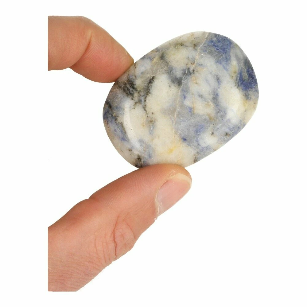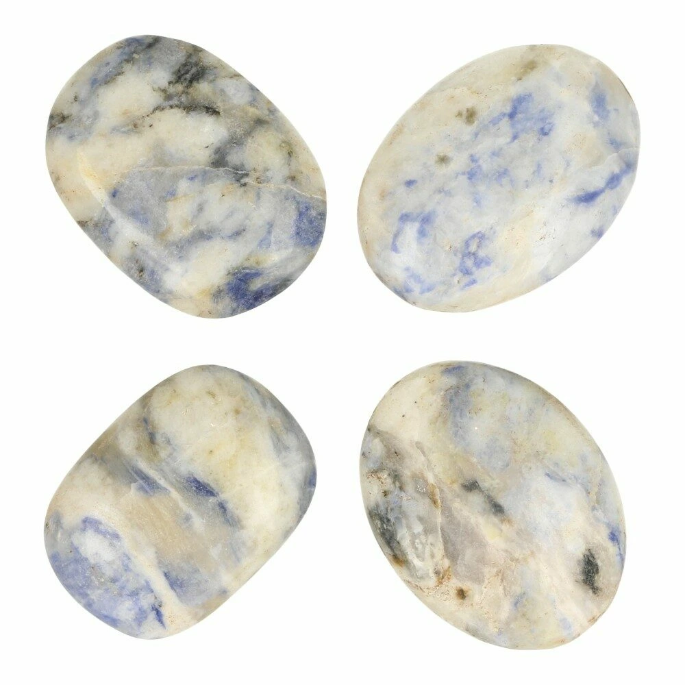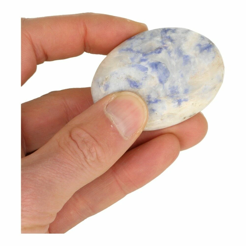 Bijzondere afghaniet knuffelsteen met blauwe afghaniet in calciet. De afmeting van de afghaniet knuffelstenen is ongeveer 5,5-6cm lang, 4-4,5 cm breed en 1,8cm dik. Je ontvangt een soortgelijke afghaniet knuffelsteen als op de foto’s.