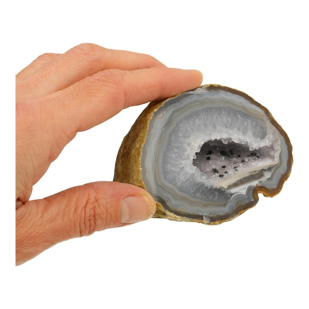 In geodevorm is agaat vaak gecombineerd met bergkristal. Hierdoor zuivert het de energie in de ruimte en nodigt het je uit om te ontspannen. Je ‘zakt’ makkelijker in je lichaam en de inwendige spanning vermindert. Ook geeft de agaat geode een positieve stemming en helpt om de energie ‘schoon’ te houden. Hierdoor is een agaat geode een fijne toevoeging in ieder interieur.