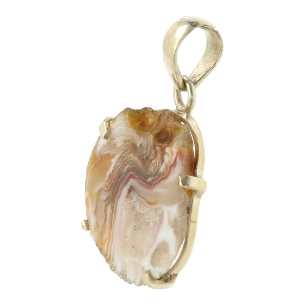 Agaten ontstaan in holle ruimtes in vulkanisch gesteente die vaak door gasbellen zijn ontstaan. De banden ontstaan door ‘verontreinigingen’ die in lagen zijn opgeslagen.