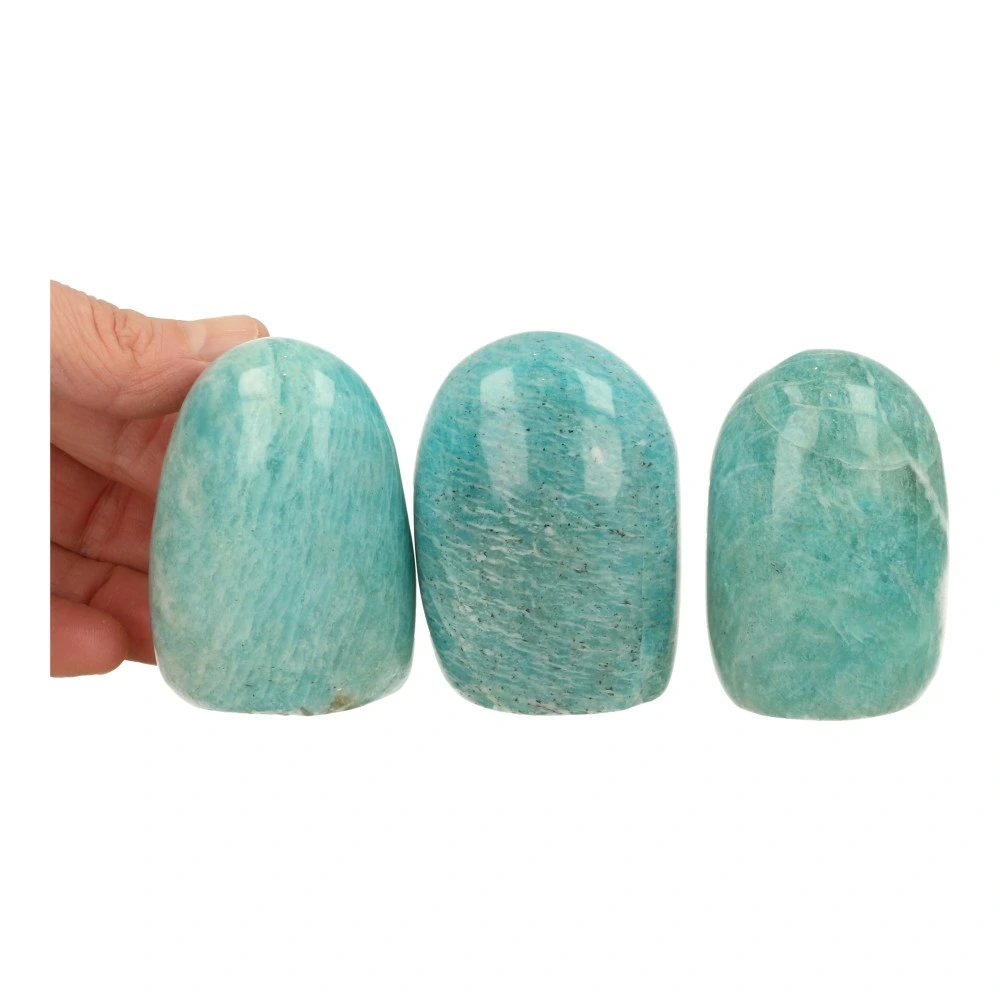 Fraaie amazoniet gepolijste zuil van circa 6-6,5cm hoog. Deze fraaie amazoniet gepolijste zuil heeft een prachtige kleur en schittering in het licht. Je ontvangt een van de amazoniet gepolijste zuiltjes van de foto. Heb je een voorkeur? Zet het als opmerking bij je bestelling of stuur een whatsapp bericht en we laten je weten welke er voorradig zijn.