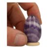 Zachte amethist yoni ei met een gaatje. De afmeting van dit amethist yoni ei is 41mm hoog en 25mm diameter. Het gaatje dient om een touwtje door te doen als je dat prettig vindt. Je ontvangt een soortgelijke amethist yoni ei als op de foto, inclusief houten ring. Lees meer over het gebruik van yoni eieren op de pagina yoni ei.