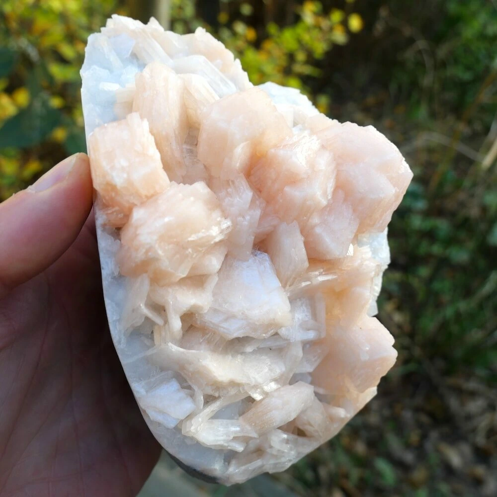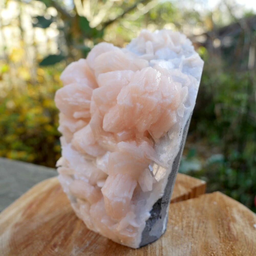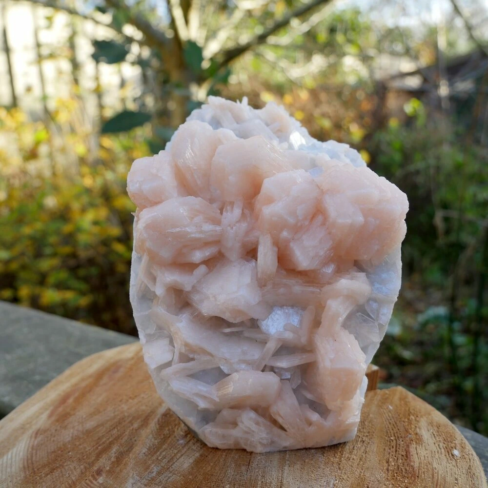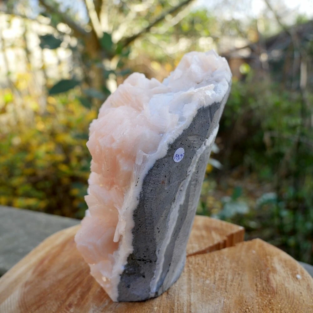 Bijzonder fraaie roze stilbiet op witte chalcedoon staande vorm ‘nr1’ uit India. Dit fraaie stuk met esthetische roze stilbiet kristallen, fraai gesitueerd op een basis van glimmende witte chalcedoon kristallen is een echte eye-catcher. Een bijzonder fraai en fijn stuk met lichte en liefdevolle energie. De afmeting van deze unieke stilbiet op chalcedoon is ongeveer 11cm breed, 14cm hoog en 7,5cm dik. Deze combinatie op chalcedoon komt niet veel voor en zeker niet in deze fraaie kwaliteit! Een echte aanwinst voor iedere ruimte! De onderkant is vlak gemaakt, zodat dit fraaie stuk zelfstandig kan staan.