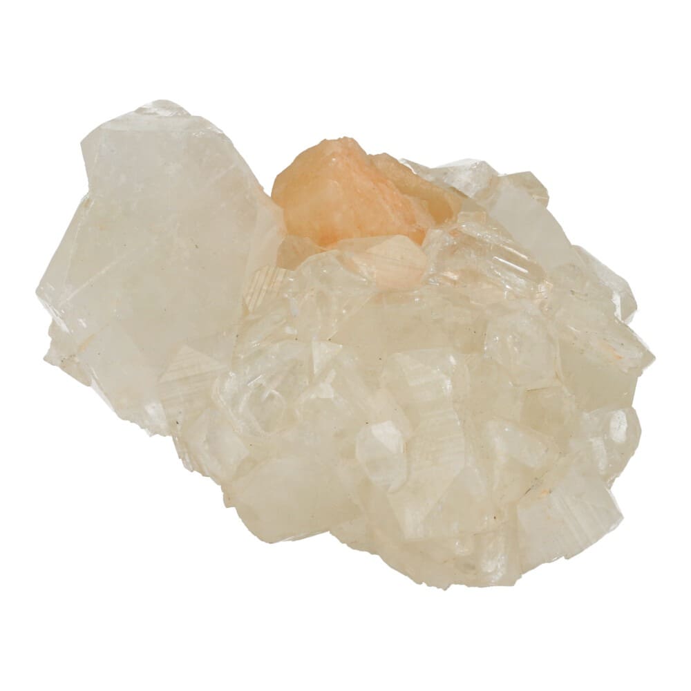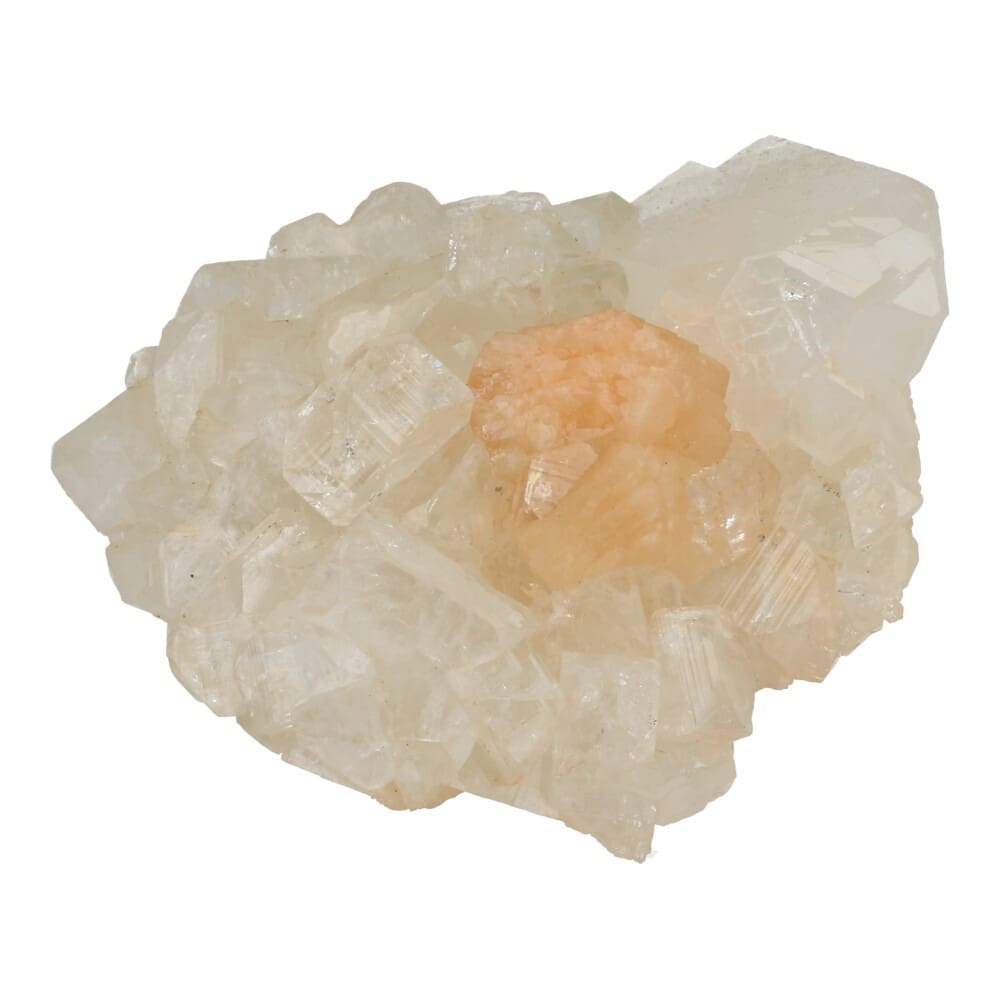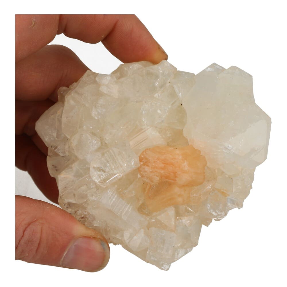 Fraaie heldere apofyliet met stilbiet uit India. Prachtige kwaliteit met heldere kristallen apofyliet en een vleugje roe stilbiet erop. Dit stuk heeft een heldere energie en is van beide kanten fraai om te zien. De afmeting van dit stuk is circa 9 x 8 x 3 cm. Je ontvangt het stuk apofyliet van de foto.