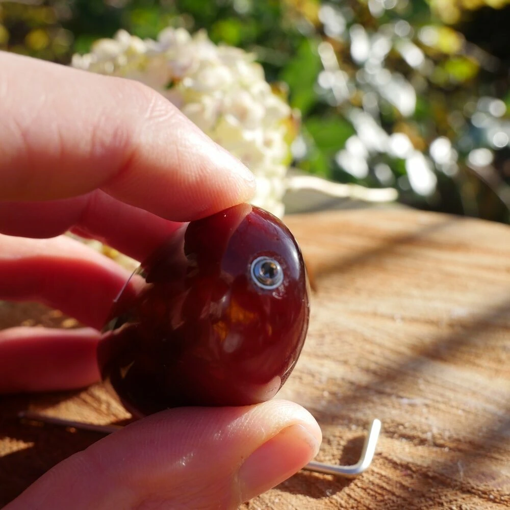 Het askamertje biedt precies genoeg ruimte voor een klein beetje as. Na het vullen sluit je het compartiment af met het meegeleverde schroefje en sleuteltje. Wil je het extra goed verzegelen? Breng dan bij het indraaien een drupje secondelijm aan op het schroefje. Draai het niet verder dan gelijk met de buitenkant van de steen, zodat het schroefje niet per ongeluk in het vakje valt. Voor het vullen kun je gebruikmaken van het bijgevoegde papieren trechtertje, of er zelf eenvoudig eentje maken.
