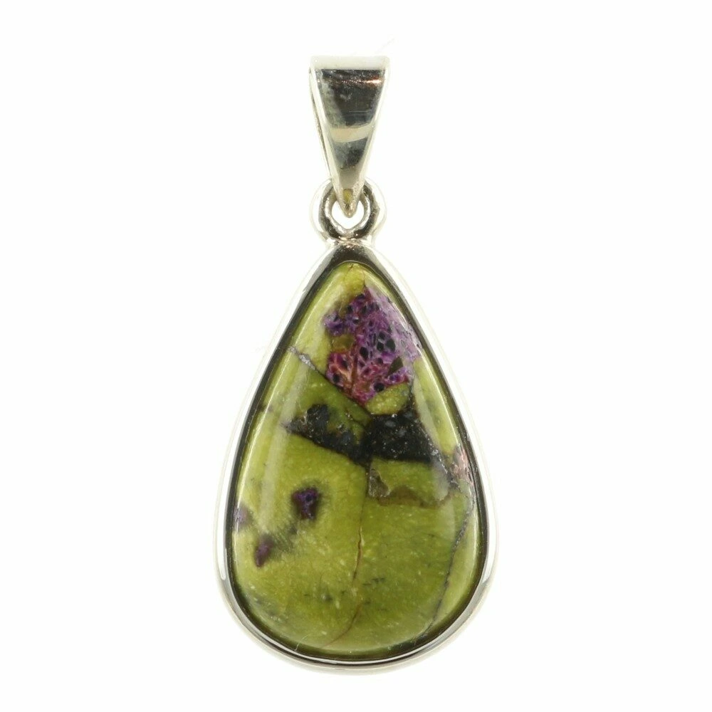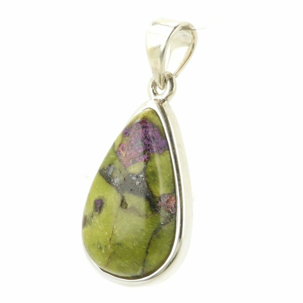Mooie groen met paarse atlantisiet hanger ‘nr5’, welke is gevat in juwelierskwaliteit 925 sterling zilver. Atlantisiet is een combinatie van serpentijn en stichtiet uit Australië. Je ontvangt de atlantisiet hanger in zilver van de foto. De afmeting van de steen in de hanger is ongeveer 22mm hoog en 14mm breed.