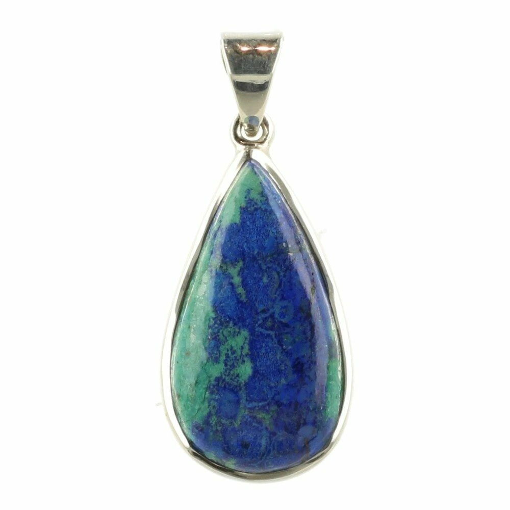 Helderblauwe A-kwaliteit azuriet met malachiet hanger in zilver van juwelierskwaliteit 925 sterling zilver. Deze fraaie hanger bestaat uit een mix van azuriet (donkerblauw) en malachiet (groen) Azuriet is het meeste aanwezig, dus voert de boventoon in de werking. Voor de volledigheid zijn zowel de werking van azuriet als malachiet hieronder weergegeven. De afmeting van de azuriet in de hanger is ongeveer 27mm hoog en 15mm breed. Je ontvangt de azuriet met malachiet hanger in zilver van de foto.