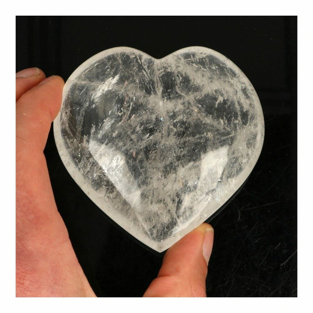 Fraai helder bergkristal hart met een breedte van circa 93mm en hoogte van 92mm. De dikte is ongeveer 32mm. Je ontvangt het bergkristal hart van de foto.