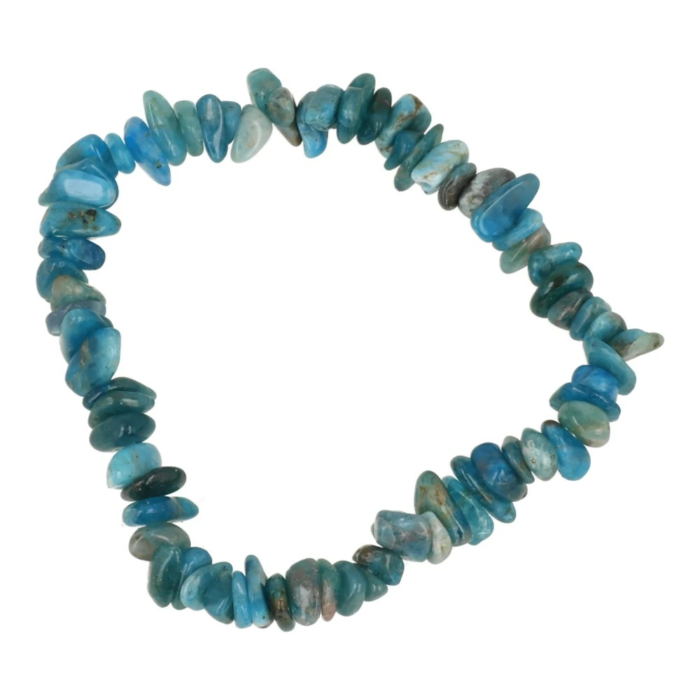 Prachtige blauwe apatiet armband met kleine gepolijste steentjes (split). Deze blauwe apatiet armband is vooral geschikt voor dames met een normale pols, of heren met een smallere pols. De armband is rekbaar en past bij een polsomtrek van 15-17cm. Je ontvangt een soortgelijke blauwe apatiet armband als op de foto.