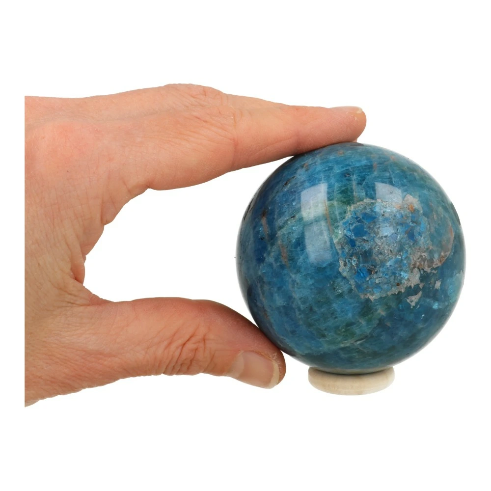 Prachtige diep blauwe apatiet bol met een diameter van circa 64 mm. Deze blauwe apatiet bol is mooi intens en helder van kleur. Prachtig om te zien en heerlijk om een ruimte op te fleuren. Je ontvangt deze bol met een ringetje.
