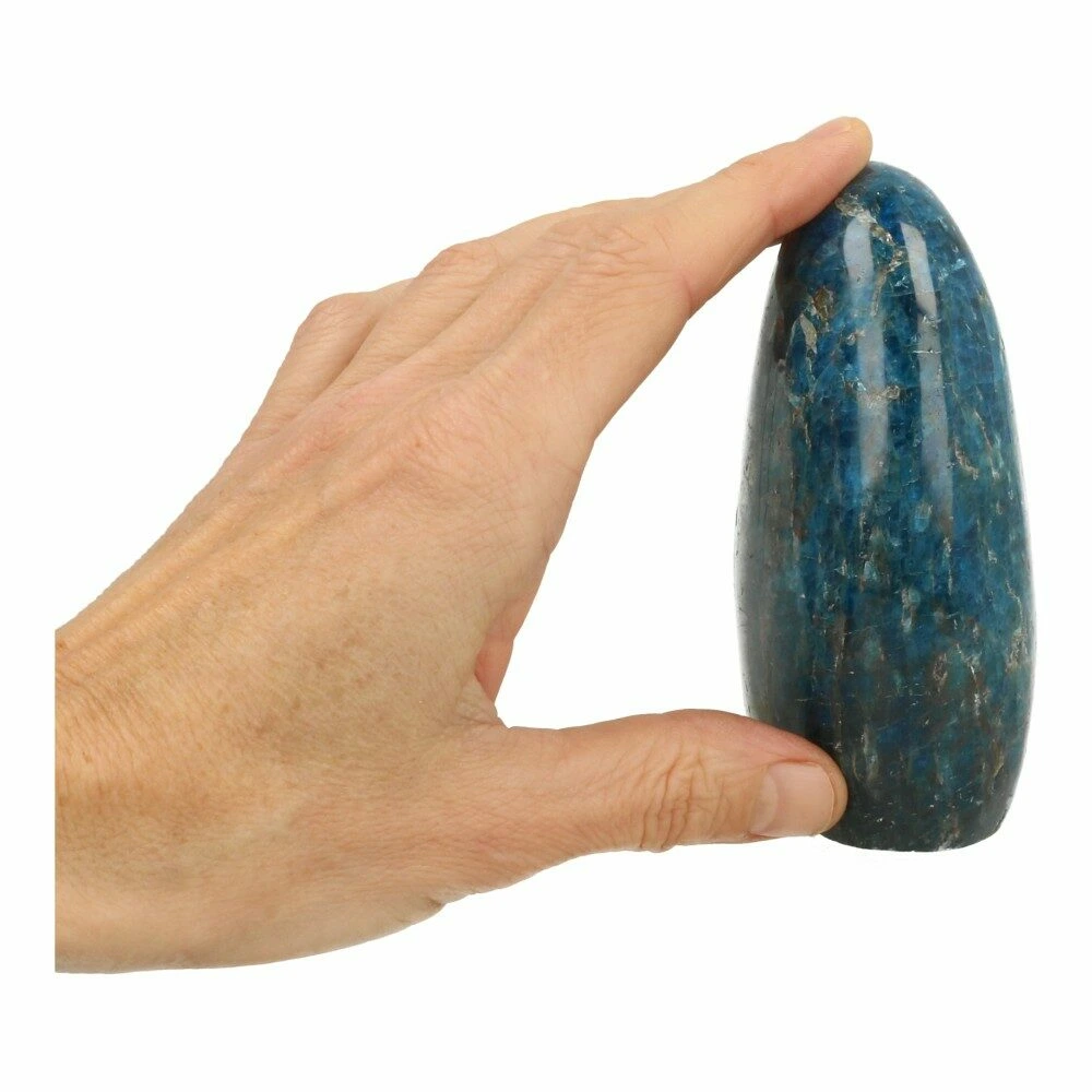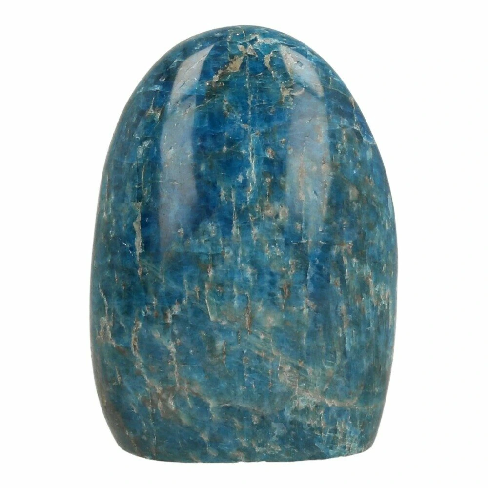 Prachtige blauwe apatiet vrije vorm van circa 107mm hoog, 77mm breed en 46mm diep. Heerlijke blauwe apatiet vrije vorm met een heldere en frisse energie om een ruimte op te fleuren. Je ontvangt de blauwe apatiet vrije vorm van de foto.