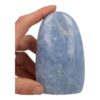 Fijne blauwe calciet gepolijste vorm van circa 12,5cm hoog, 7,5cm breed en 4,3cm dik uit Madsgaskar. Je ontvangt deze blauwe calciet gepolijste vorm van de foto.