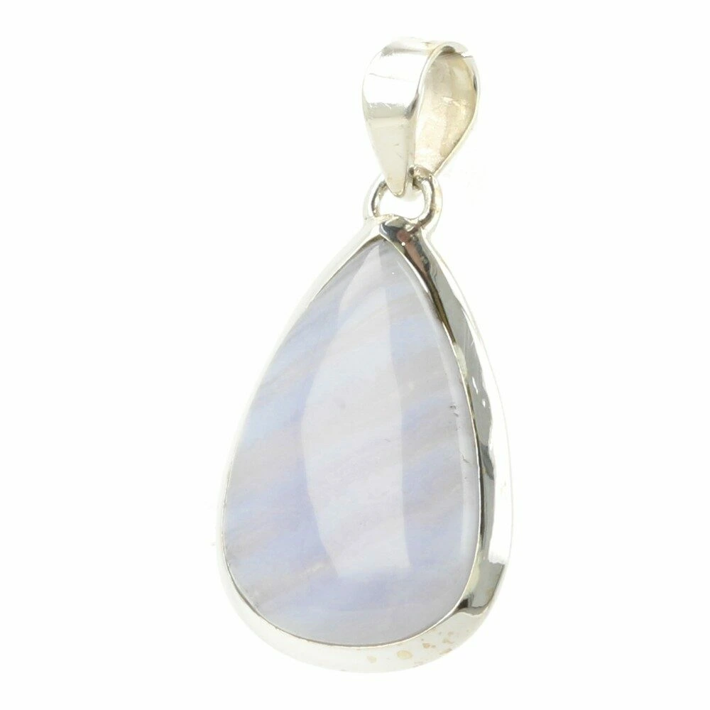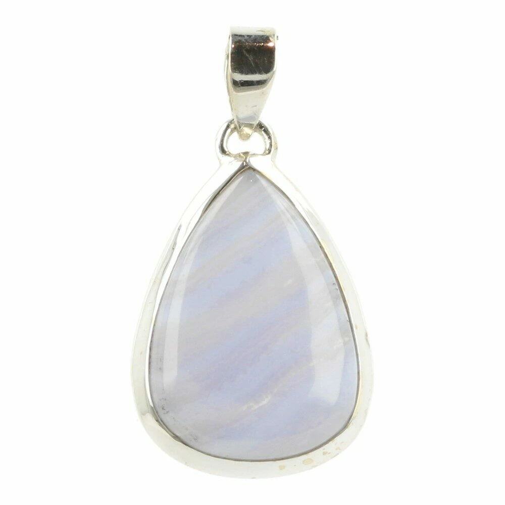 Prachtig zachte blauwe chalcedoon hanger in zilver ‘nr6’. Deze A-kwaliteit blauwe chalcedoon heeft mooie patronen en fraaie kleur en wordt ook wel blue lace agaat genoemd. De hanger is gemaakt van juwelierskwaliteit 925 sterling zilver. De afmeting van de blauwe chalcedoon in de hanger is ongeveer 26mm hoog en 18mm breed. Je ontvangt de blauwe chalcedoon hanger in zilver van de foto.