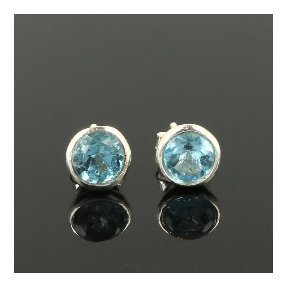 Blauwe topaas oorbel facet geslepen in zilver 5mm