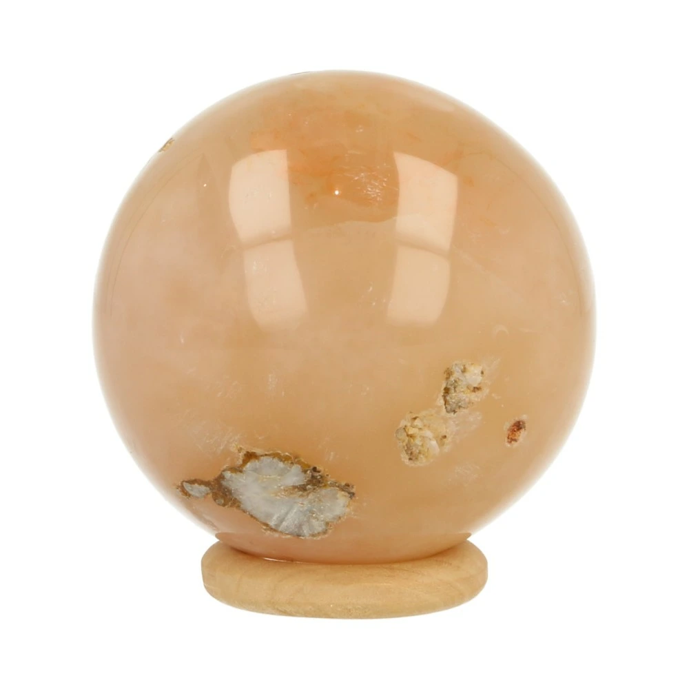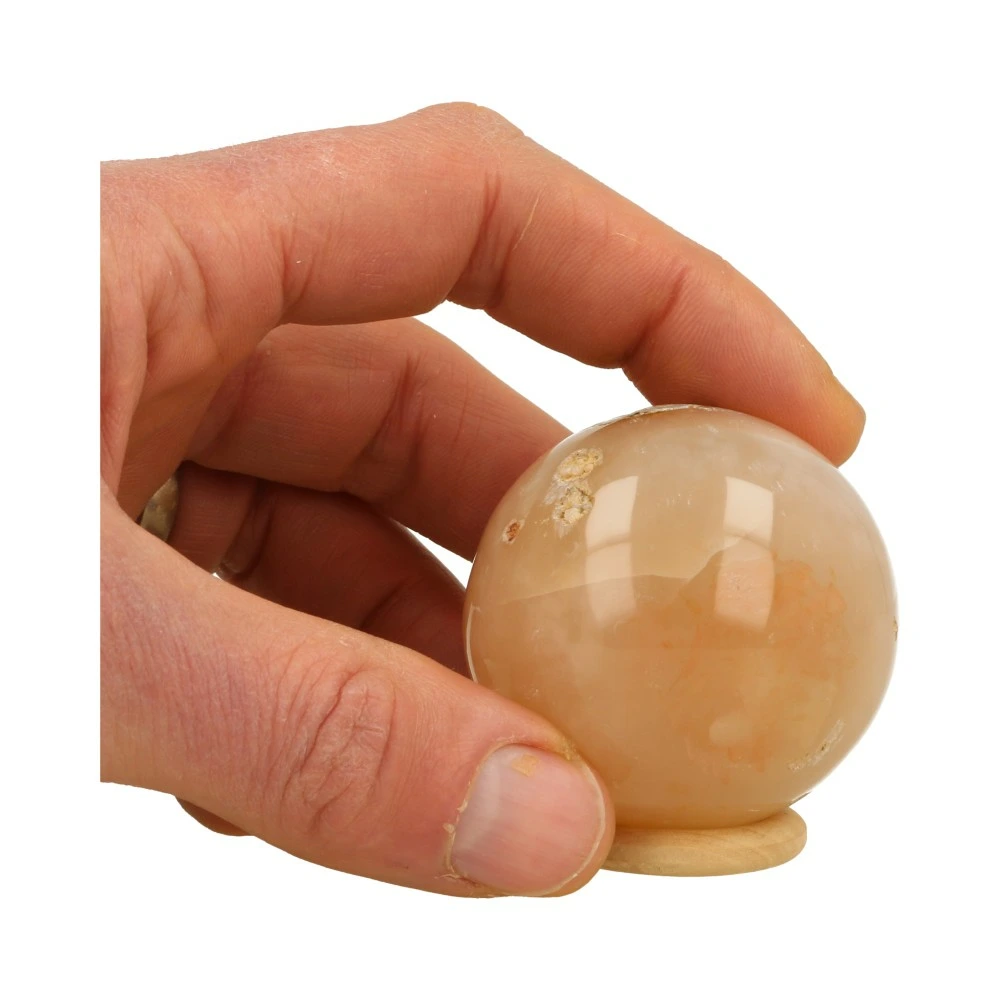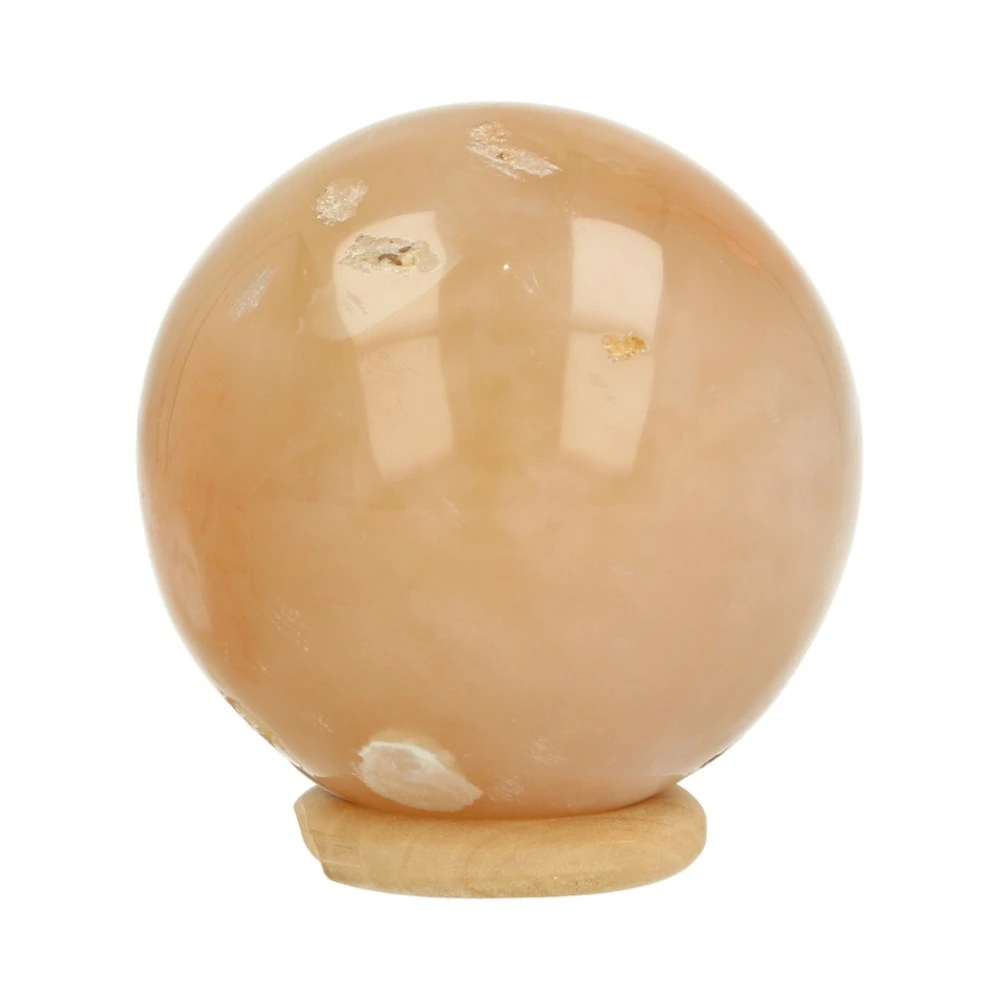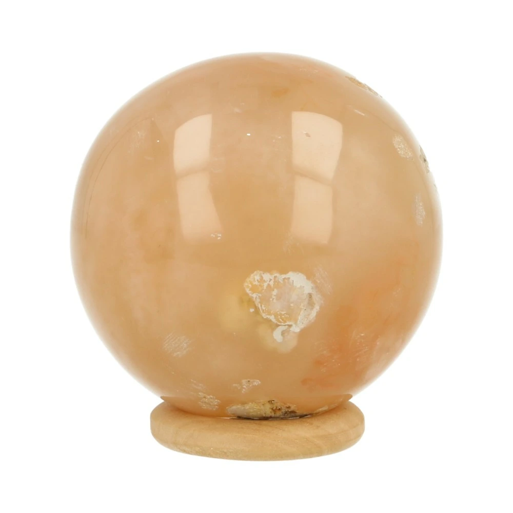Fijne bloemagaat bol met een diameter van 52mm uit Madagaskar. Bloemagaat is de naam voor de heldere agaat met wittige vlekken. Je ontvangt de bloemagaat bol van de foto, inclusief houten ringetje.