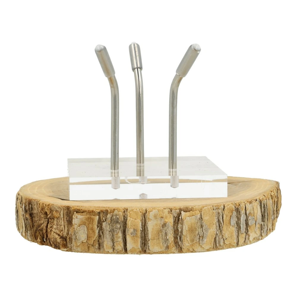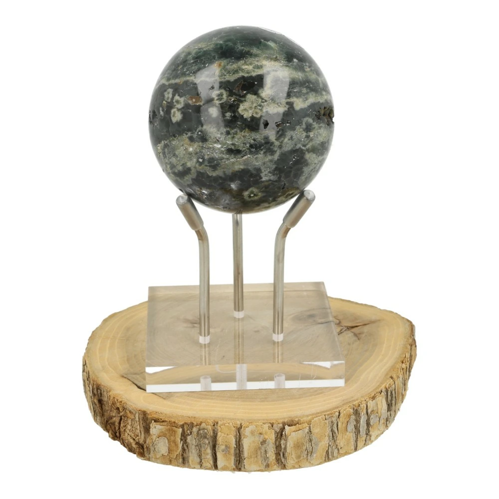 Leuke bol standaard van plexiglas om je bol of ruwe stuk mooi neer te kunnen zetten. De afmeting van de basis is 65x65mm en de voetjes zijn 54mm hoog vanaf de basis. De afstand is ongeveer 4cm, waardoor deze standaard geschikt is voor bollen vanaf 6cm ongeveer. De bol op de foto heeft een diameter van 60mm. De uiteinden van de pootjes hebben een stukje transparant plastic, waardoor ze goede grip hebben op de steen die je er op wilt zetten.