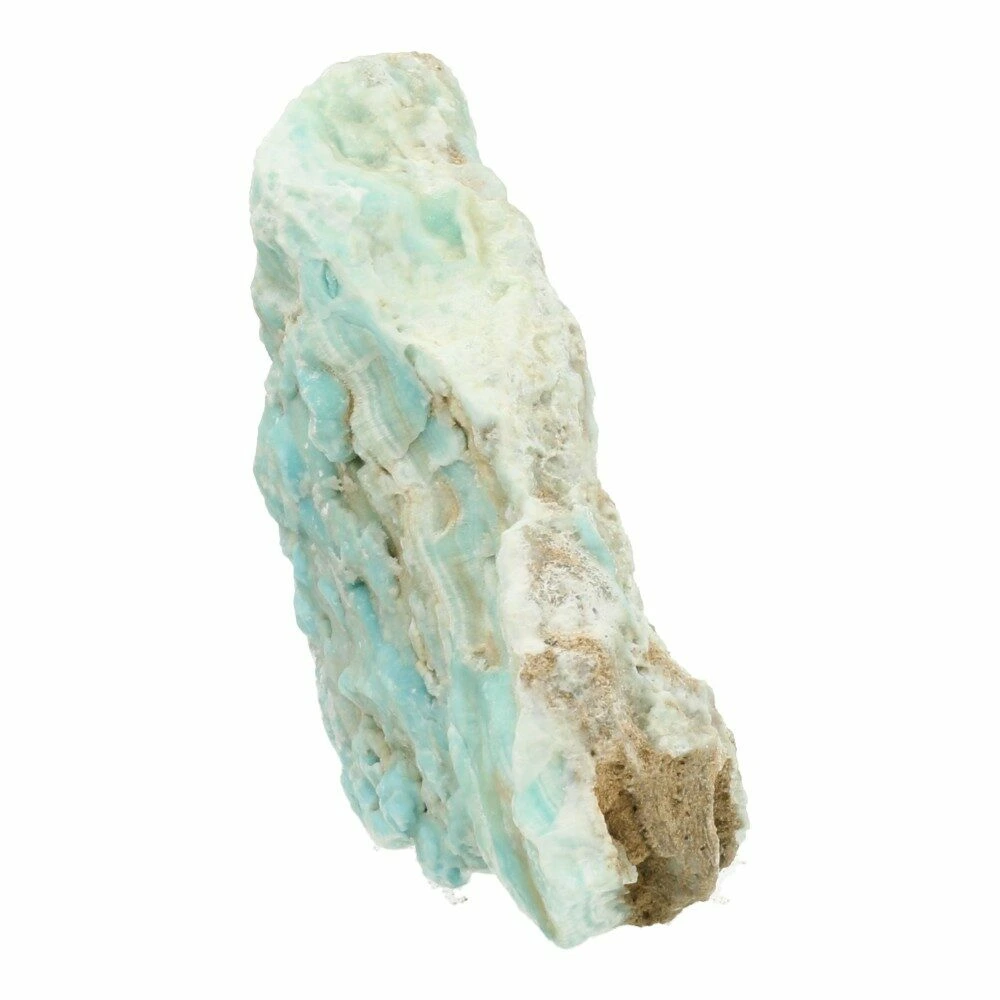 Fraaie Carribean blue calciet knuffelsteen maat groot, van ongeveer 7 – 8,5cm lang, 4-5cm breed en 2-3cm dik. Carribean blue calciet is een nieuwe vondst uit 2020 en is een fraaie variant van blauwe aragoniet. De carribean blue calciet knuffelsteen bevatten vaak natuurlijke holtes. Je ontvangt een soortgelijke carribean blue calciet knuffelsteen als op de foto.