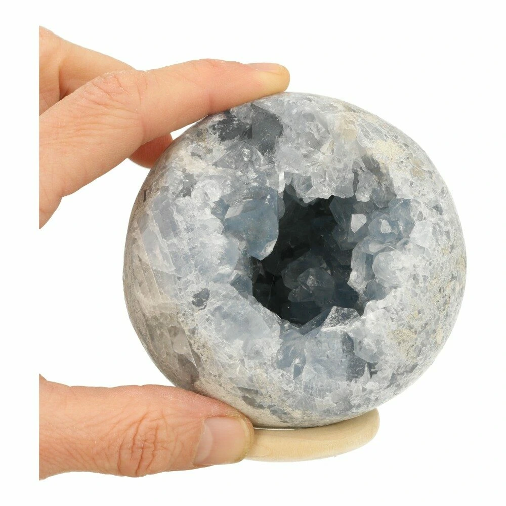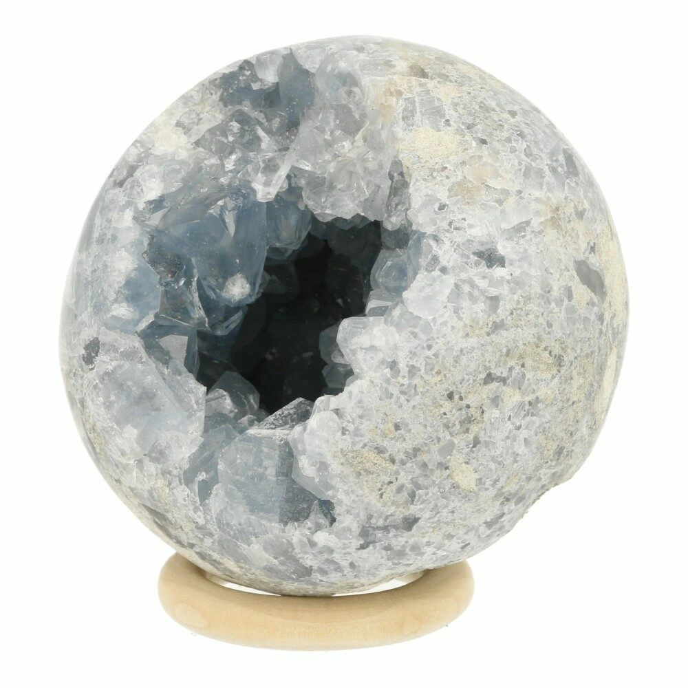 Celestien bol ruw met een heldere energie. Vrijwel de gehele bol bestaat uit celestien, een klein deel is moedergesteente. De bovenzijde van de bol is ruw en bestaat uit kristallen. Een bijzondere combinatie van bolvorm met deels ruwe celestien geven dit stuk een heldere energie, die je helpt te herinneren dat je niet alleen bent. Er is begeleiding in de andere wereld en die staat voor je klaar, alles wat je hoeft te doen is vragen.