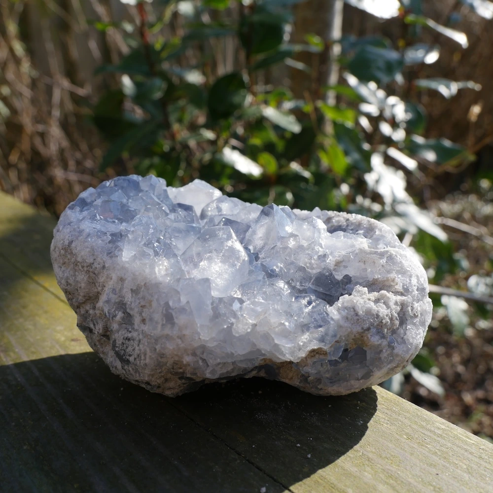 Fraai helder celestien cluster met fijne energie en heldere kristallen. Dit fraaie stuk met mooie vorm en energie is circa 11,8 x 8,9cm en 5,5cm hoog. Zoek je een ander stuk? Neem contact met ons op, want we hebben een steeds wisselende voorraad mooie celestien clusters!