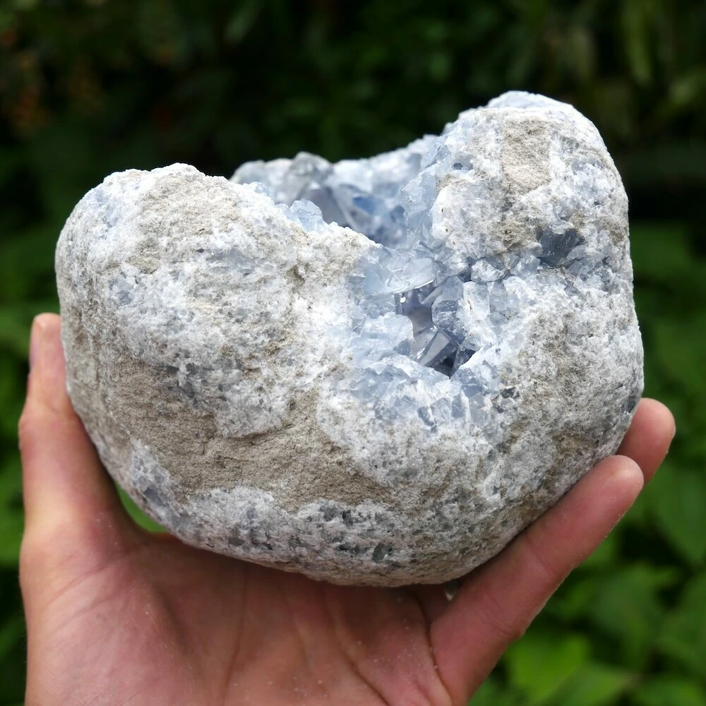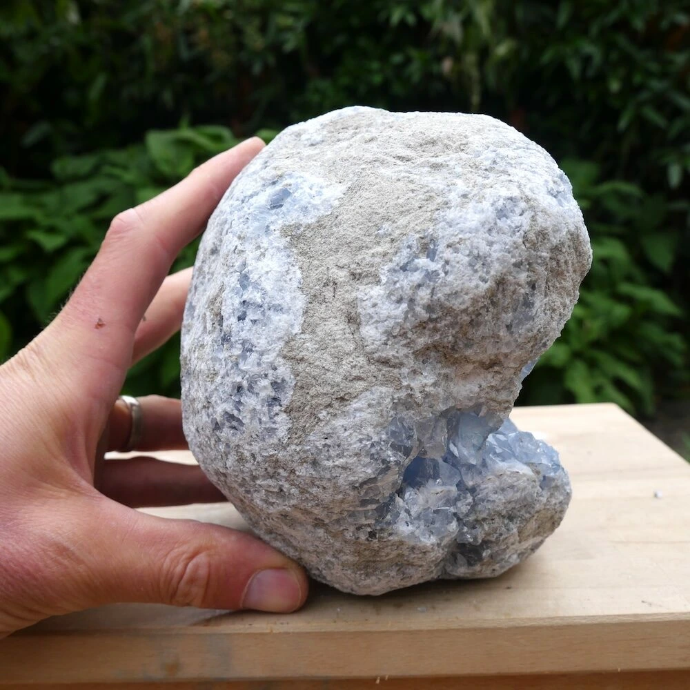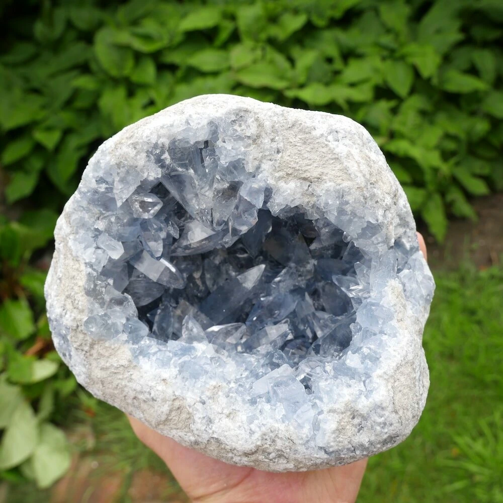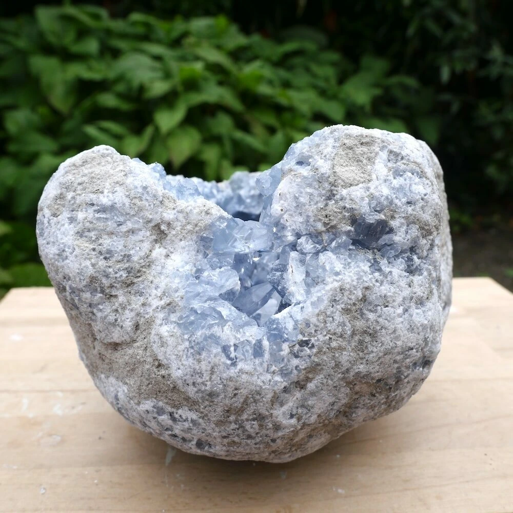 opkwaliteit celestien geode met heldere kristallen en een gewicht van 5,8kg uit Madagaskar, hoge kwaliteit zonder beschadigingen en met fraaie spitse kristallen. De energie van dit stuk is helder en fris, perfect voor meer gevoelige mensen. Ze nodigt je uit om in jouw eigen heldere energie te zijn, jouw licht is immers je beste bescherming. Een prachtige celestien geode om te stralen in jouw ruimte. Deze fraaie geode kan mooi zelfstandig liggen, bestel een standaard groot om deze geode op andere manieren neer te zetten.