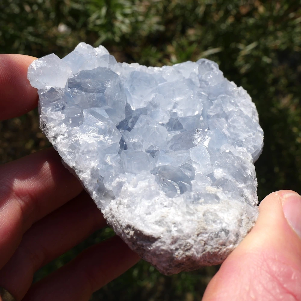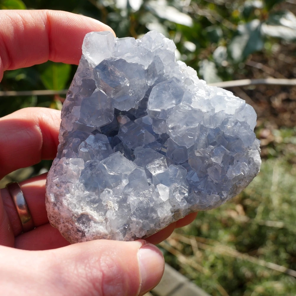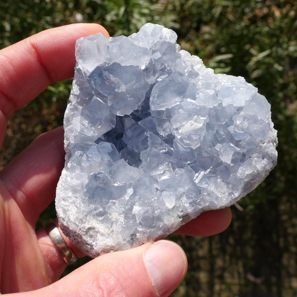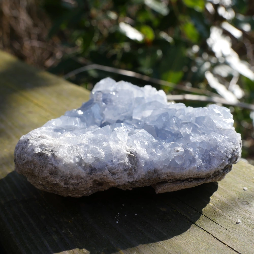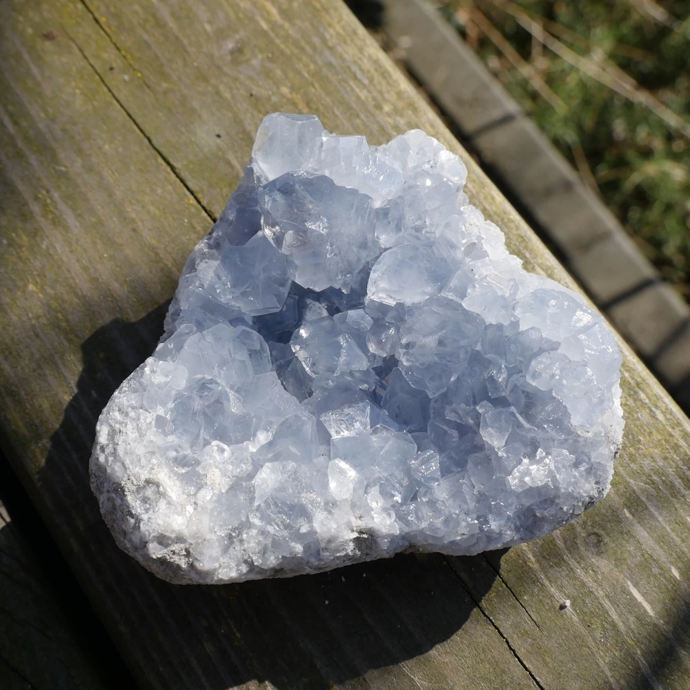 Prachtige helder celestien ruw cluster met hele fijne energie en heldere kristallen. Dit fijne stuk met hele mooie diepe kleur en energie is circa 10 x 8,5 cm en 4,6cm hoog. Zoek je een ander stuk? Neem contact met ons op, want we hebben een steeds wisselende voorraad mooie celestien clusters!