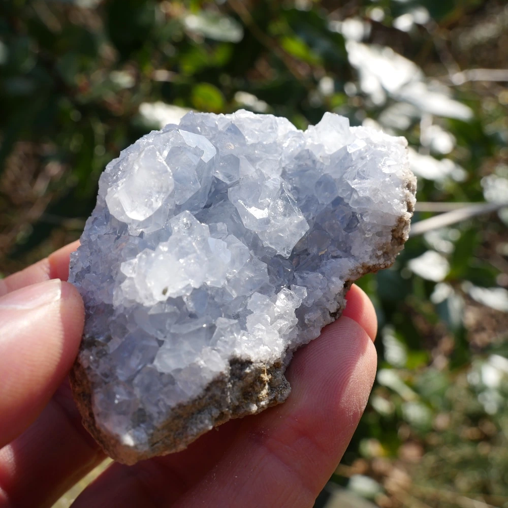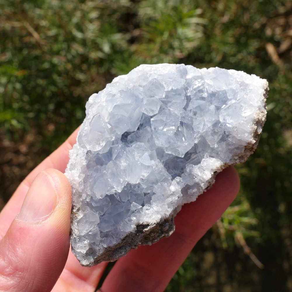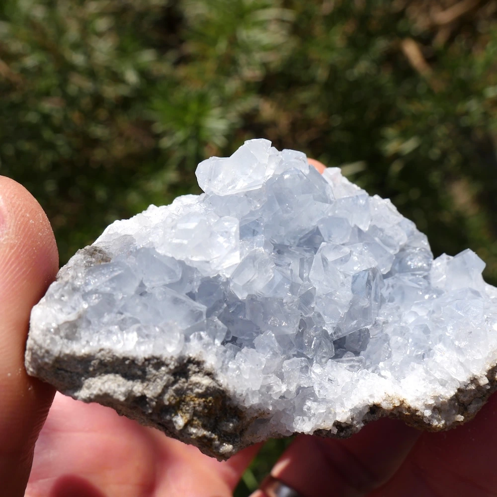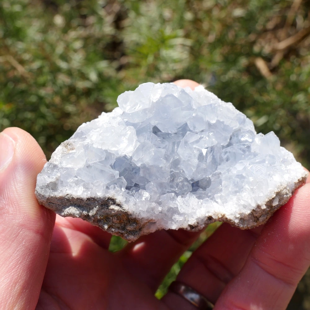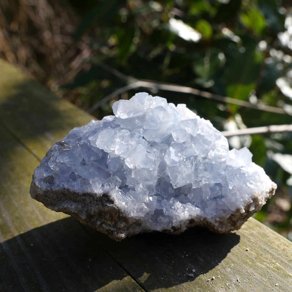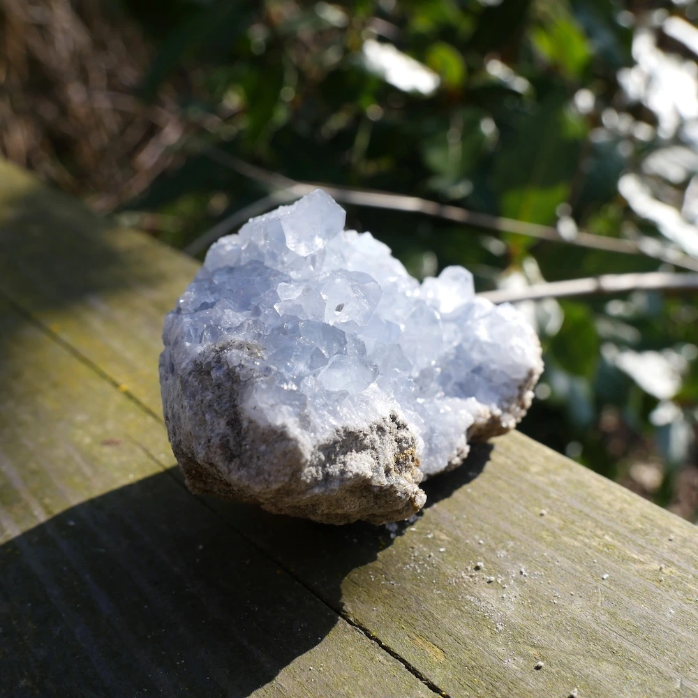 Prachtige helder celestien ruw cluster met hele fijne energie en heldere kristallen. Dit fijne stuk met mooie vorm en energie is circa 8,7 x 5,7cm en 5,4cm hoog. Zoek je een ander stuk? Neem contact met ons op, want we hebben een steeds wisselende voorraad mooie celestien clusters!