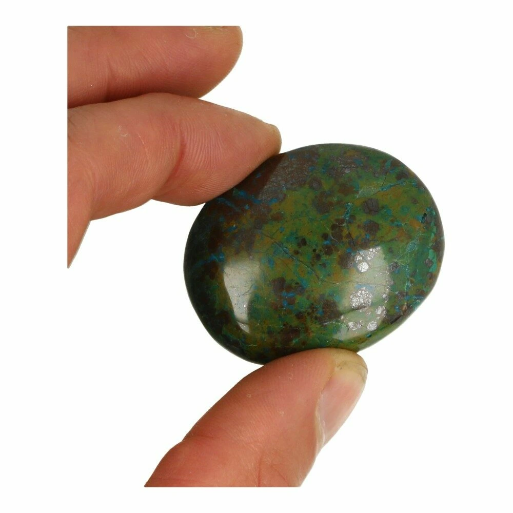 Chrysocolla komt voor in verschillende kleuren blauw, groen en bruin. Iedere steen is uniek in kleurschakering en tekening.