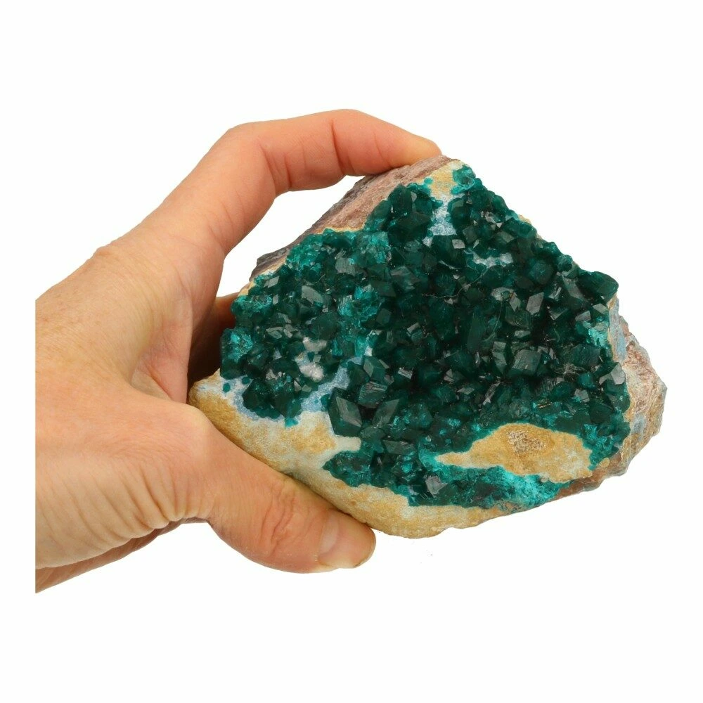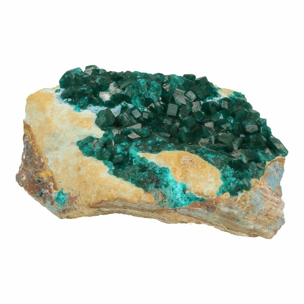 Fraai A-kwaliteit cluster heldergroene dioptaas ruw op matrix met kwarts. Een bijzonder fraai stuk dioptaas met grote kristallen die mooi afsteken op het bruine moedergesteente. De afmeting van dit stuk dioptaas is 10,5cm lang, 8cm breed en ruim 4,5cm hoog en dit fraaie stuk komt uit Congo. Unieke dioptaas ruw van hoge kwaliteit! De energie is helder en transformerend, ze nodigt je uit om het licht in de situatie te zien en daarop te focussen, zodat je kunt transformeren en groeien. Een mooie aanwezigheid voor spirituele groei en het transformeren naar een nieuwe versie van jezelf.