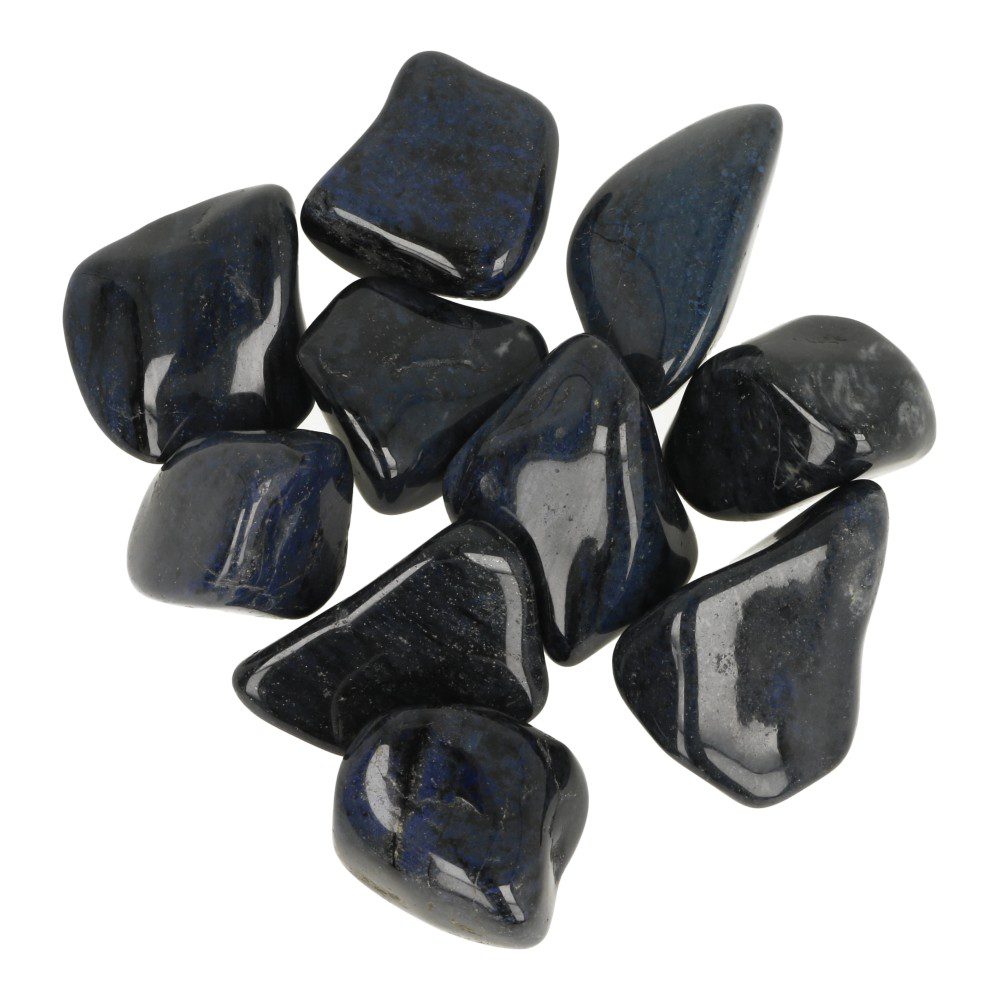 Mooie donkere dumortieriet trommelsteen 3cm met diepblauw/zwarte werkjes in de steen. De afmeting is ongeveer 2,8-3,5cm lang. Je ontvangt een soortgelijke dumortieriet trommelsteen 3cm als op de foto.