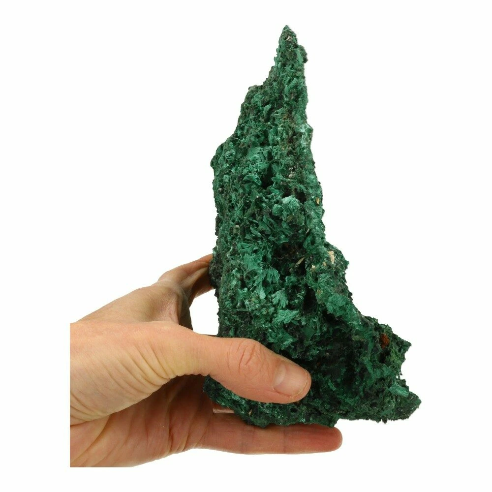 Prachtige diepgroene fluwelen malachiet ruw ‘nr9’ uit Democratische Republiek Congo op plexiglas standaard. We hebben een aantal van deze unieke stukken fluwelen malachiet kunnen bemachtigen met heldergroene malachiet naaldjes op bruin moedergesteente. De schittering van de naaldjes varieert met de lichtinval en is in het echt nog veel mooier. Dit stuk heeft twee compleet verschillende zijdes, beide prachtig schitterend in het licht. De afmeting van dit fraaie stuk fluwelen malachiet is ruim 18,5cm breed, 6,5cm diep en 14cm hoog (inclusief standaard). Je ontvangt de fluwelen malachiet op standaard van de foto’s.
