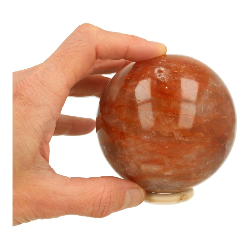 Mooi formaat rode golden healer bol met een diameter van 81mm. Deze rode golden healer wordt ook wel red healer genoemd. Je ontvangt de bol van de foto met een houten ringetje. We hebben meerdere bollen in voorraad, dus neem contact met ons op als je iets anders zoekt.