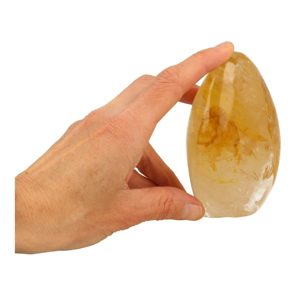 Mooi formaat golden healer vrije vorm van 108mm hoog. Deze golden healer, of limonietkwarts uit Madagaskar was rondom glad gepolijst en heeft een heldere en diepgaande energie. De afmeting is 108mm hoog, 78mm breed en 51mm diep. Je ontvangt de golden healer van de foto.
