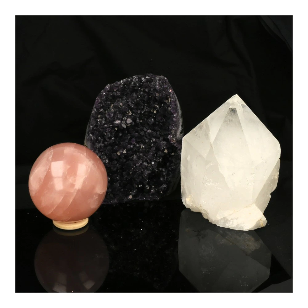 | Naam | Amethist, Bergkristal, Gouden driehoek, Rozenkwarts |