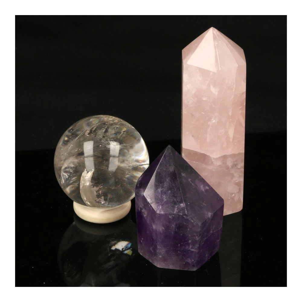 | Naam | Amethist, Bergkristal, Gouden driehoek, Rozenkwarts |