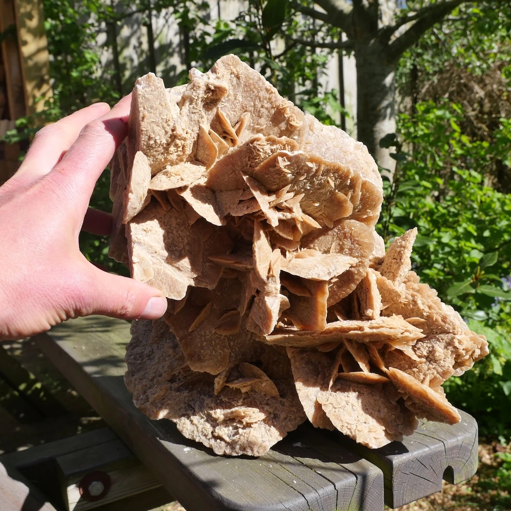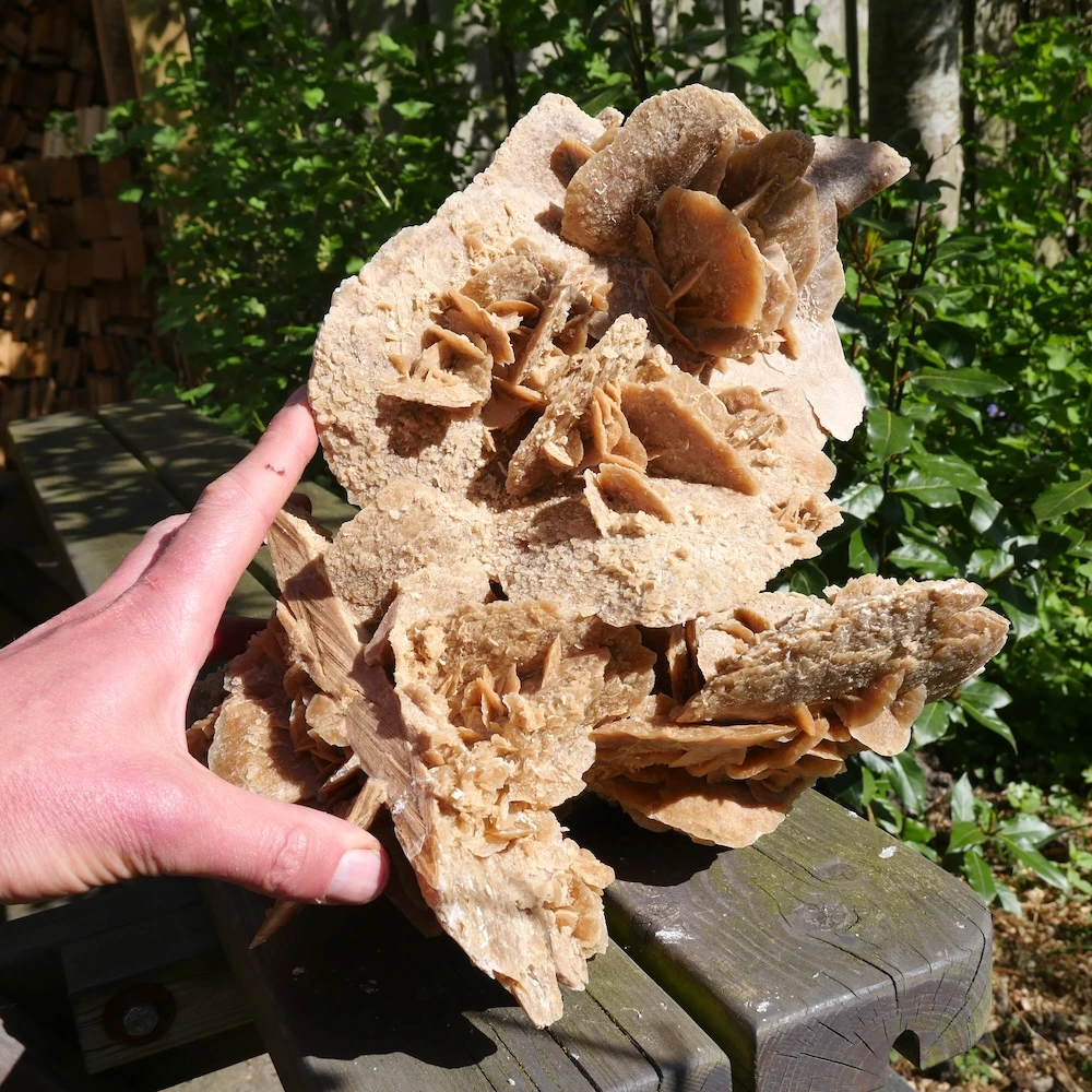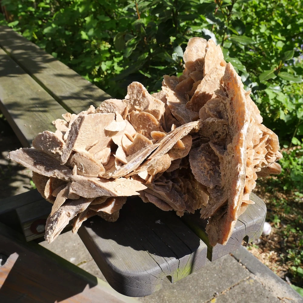 Fraaie grote woestijnroos ‘nr3’ van 29 x 28 x 23cm en 7,7kg zwaar uit Tunesië. Deze grote woestijnroos heeft een fraaie ronde vorm met een grote variatie aan ‘rozen’ met mooie details en een ander aanzicht van iedere zijde. Een uniek stuk zo uit het zand. Je ontvangt de woestijnroos van de foto.