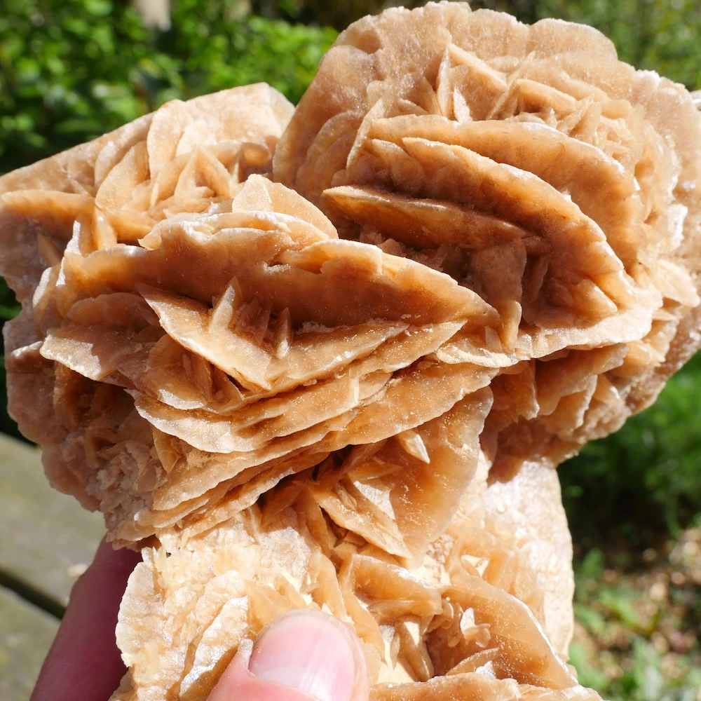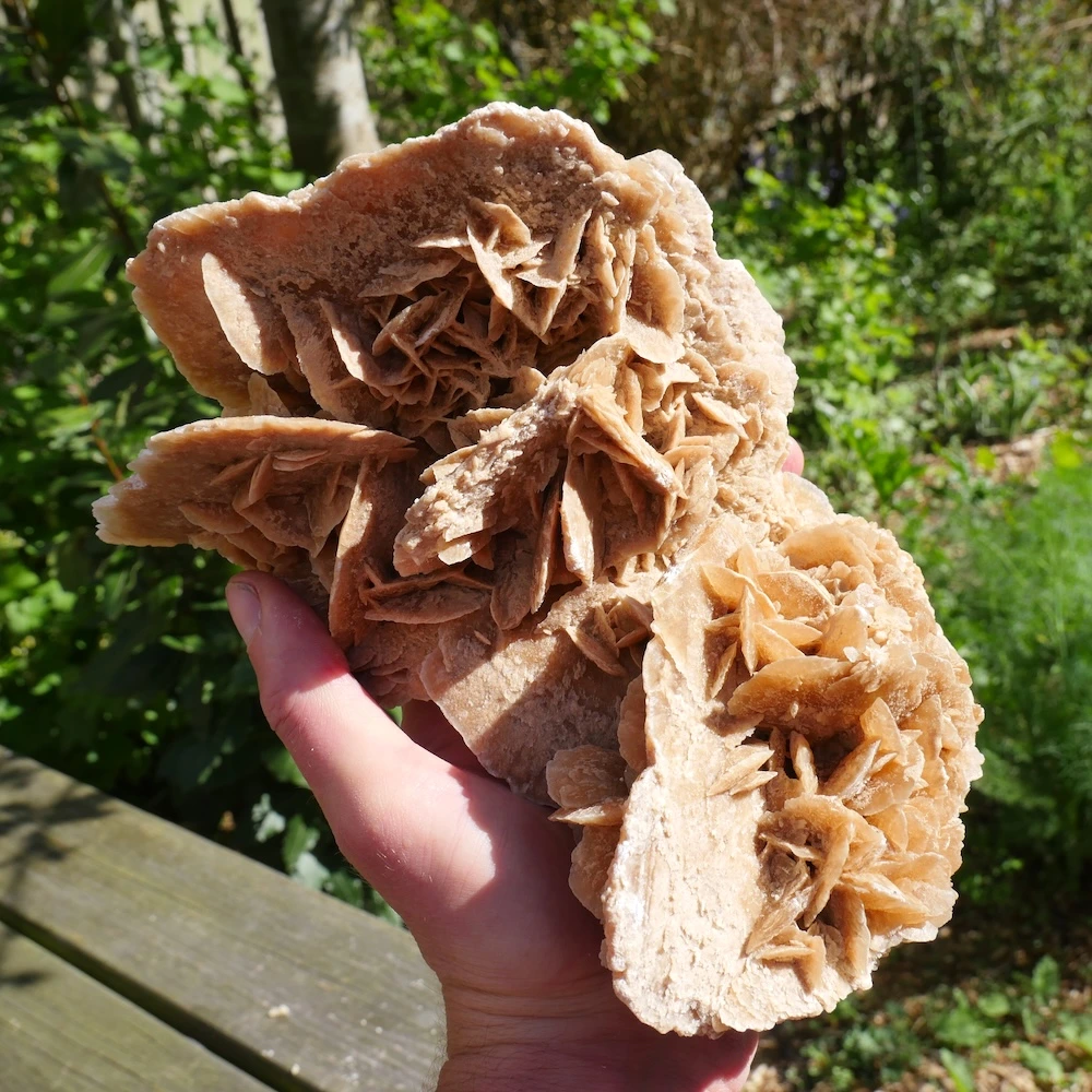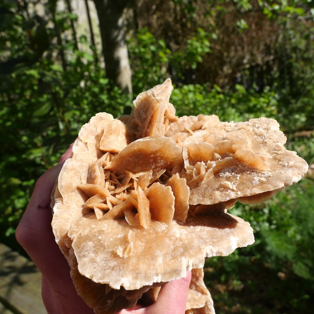 Fraaie grote woestijnroos ‘nr9’ met een afmeting van ongeveer 22 x 16 x 14cm uit Tunesië. Deze woestijnroos heeft een fraaie vorm met verfijnde ‘rozen’ aan beide zijdes en kan ook op verschillende manieren staan. Een uniek stuk zo uit het zand. Je ontvangt de grote woestijnroos van de foto.