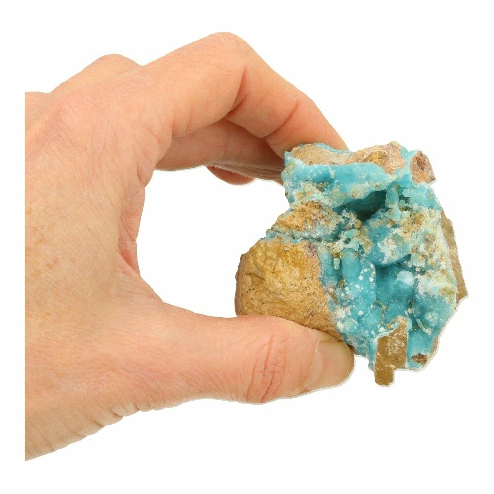 Fraai cluster helderblauwe hemimorfiet ruw nr5 uit de Mfouati mijn in Democratische Republiek Congo. De afmeting is ongeveer 6cm lang, 5,5cm breed en 4,3cm diep. Prachtige A-kwaliteit kleur met mooi glanzende kristallisatie en rondom prachtige hemimorfiet op matrix. Topstuk! Je ontvangt het cluster hemimorfiet van de foto.