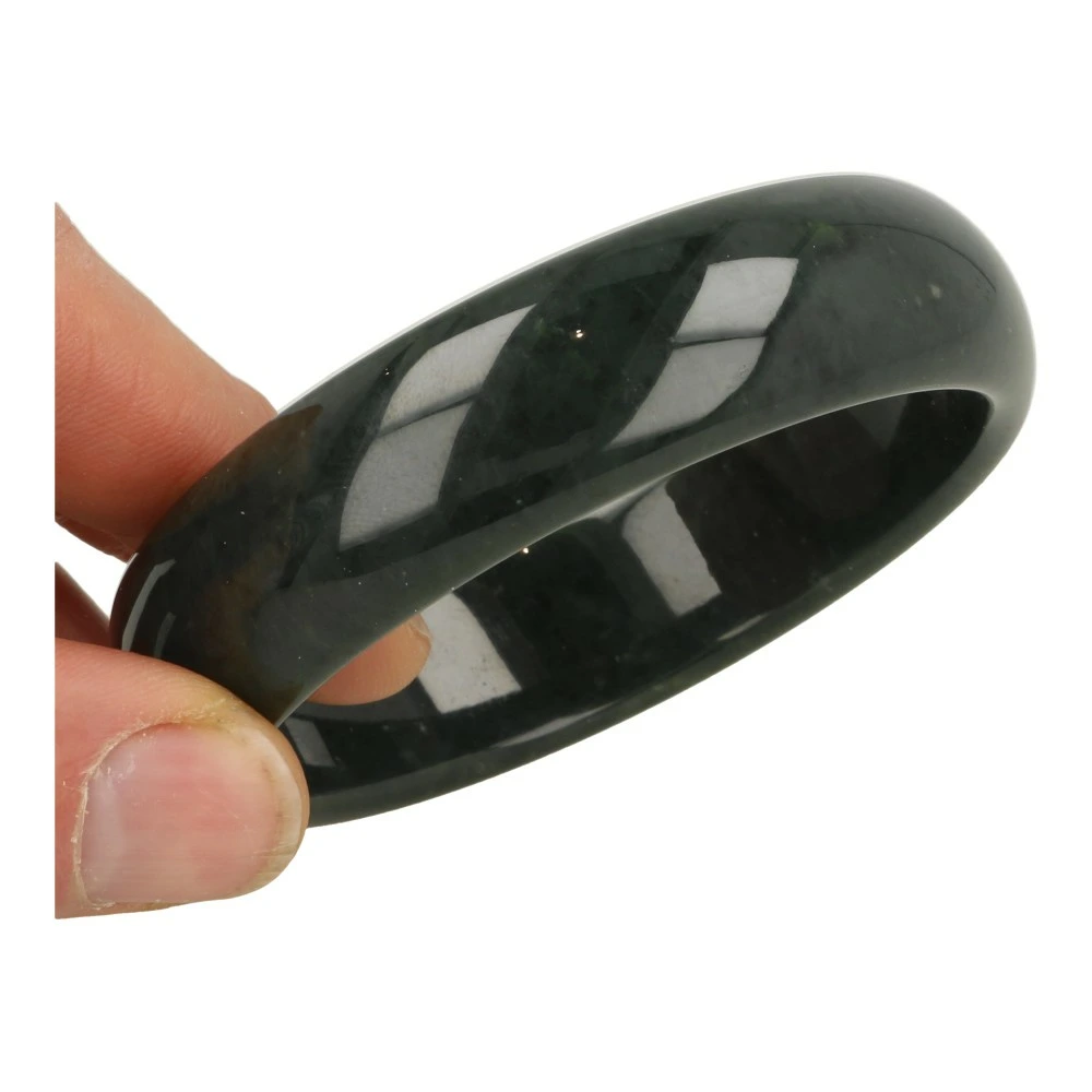 Mooie donkergroene jade nefriet bangle of gesloten armband ‘nr1’. De binnendiameter van deze jade nefriet bangle is ongeveer 68mm en de hoogte is 20mm. Deze jade nefriet komt uit jade en is als echte jade aangeduid na onderzoek. De afmeting van deze jade nefriet bangle is vooral geschikt voor vrouwen of mannen met een gemiddelde pols. Je ontvangt de jade nefriet armband als op de foto in een luxe bewaardoosje.
