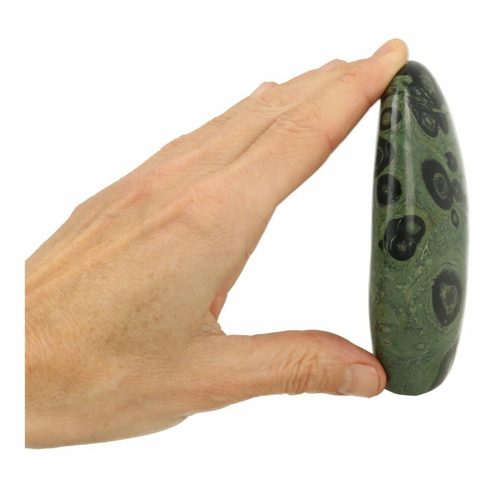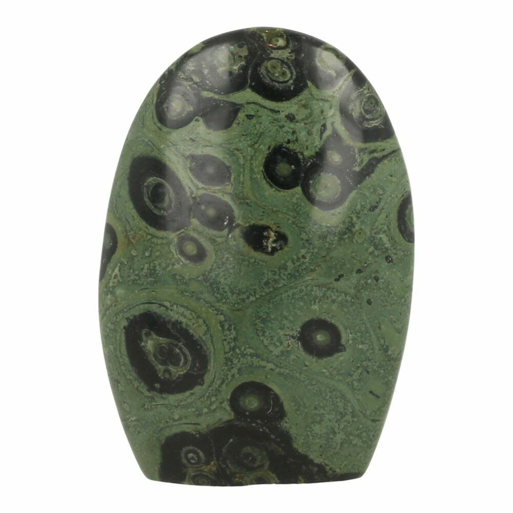 Kambaba jaspis is een grijs-groene variant van jaspis en heeft donkere ‘ogen’ in de steen.