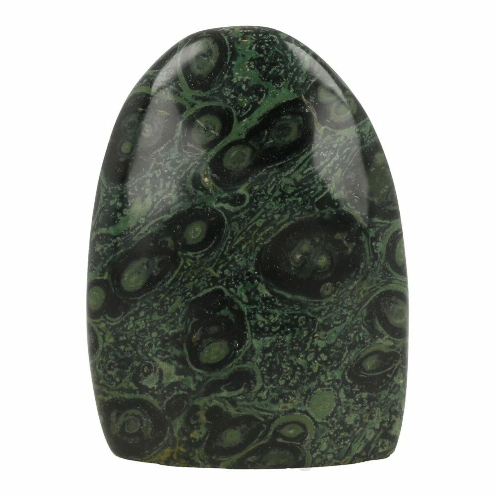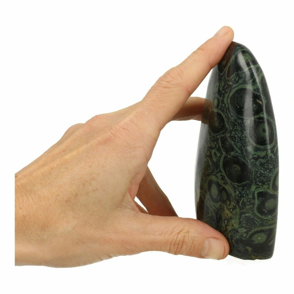 Kambaba jaspis is een grijs-groene variant van jaspis en heeft donkere ‘ogen’ in de steen.