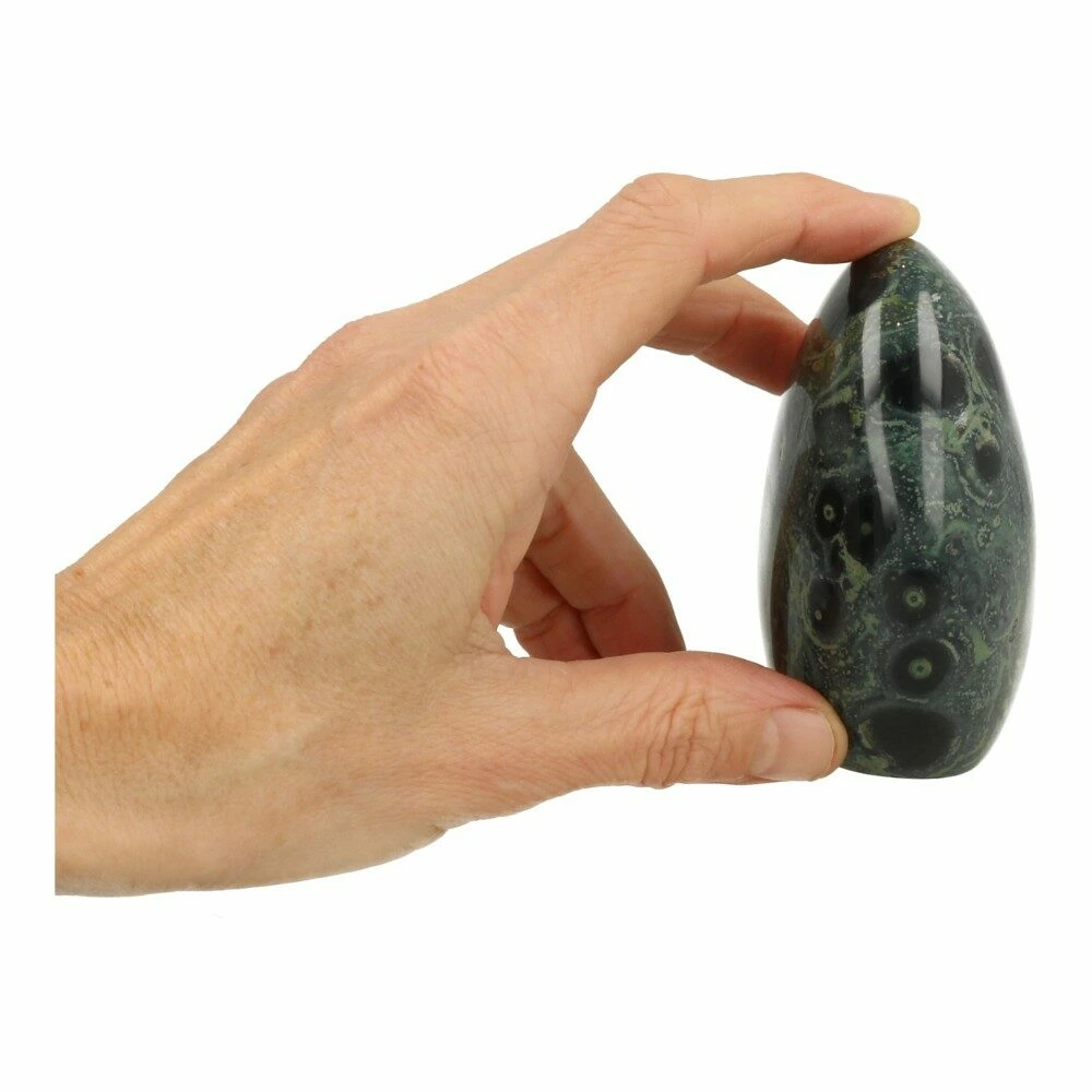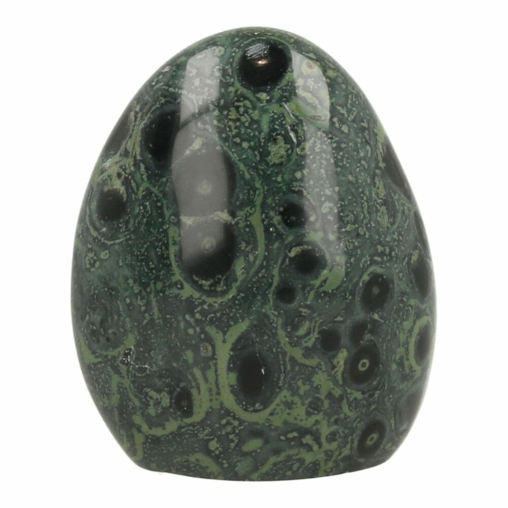 Kambaba jaspis is een grijs-groene variant van jaspis en heeft donkere ‘ogen’ in de steen.