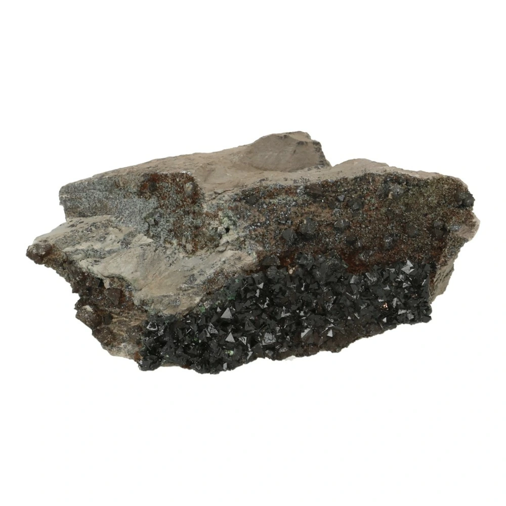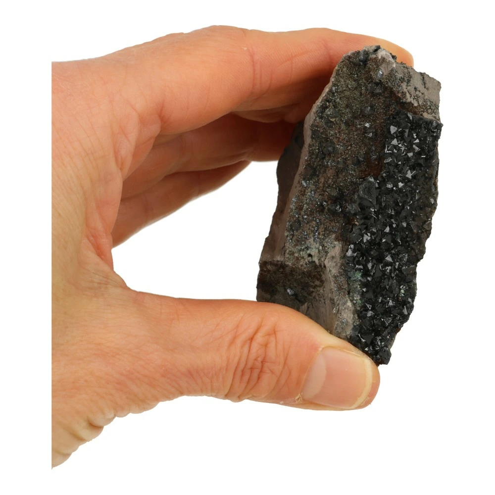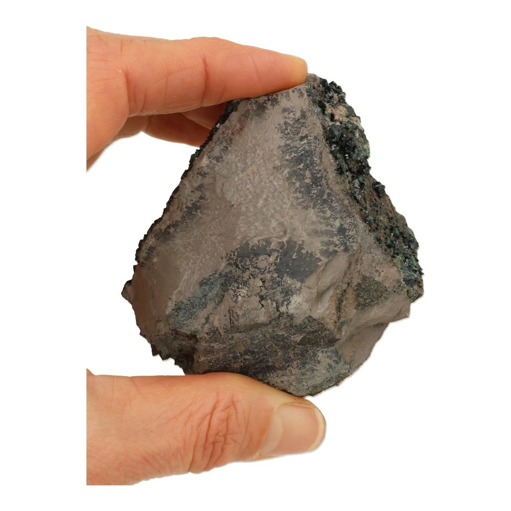 Fraaie libetheniet ruw nr13 uit Shituru, Congo. De afmetingen van dit unieke en zeldzame stuk zijn ongeveer 8cm breed, 6cm diep en 3cm hoog. Dit stukje heeft mooie grote, donkergroene kristallen aan het oppervlak. Je ontvangt dit zeldzame stuk libetheniet van de foto.
