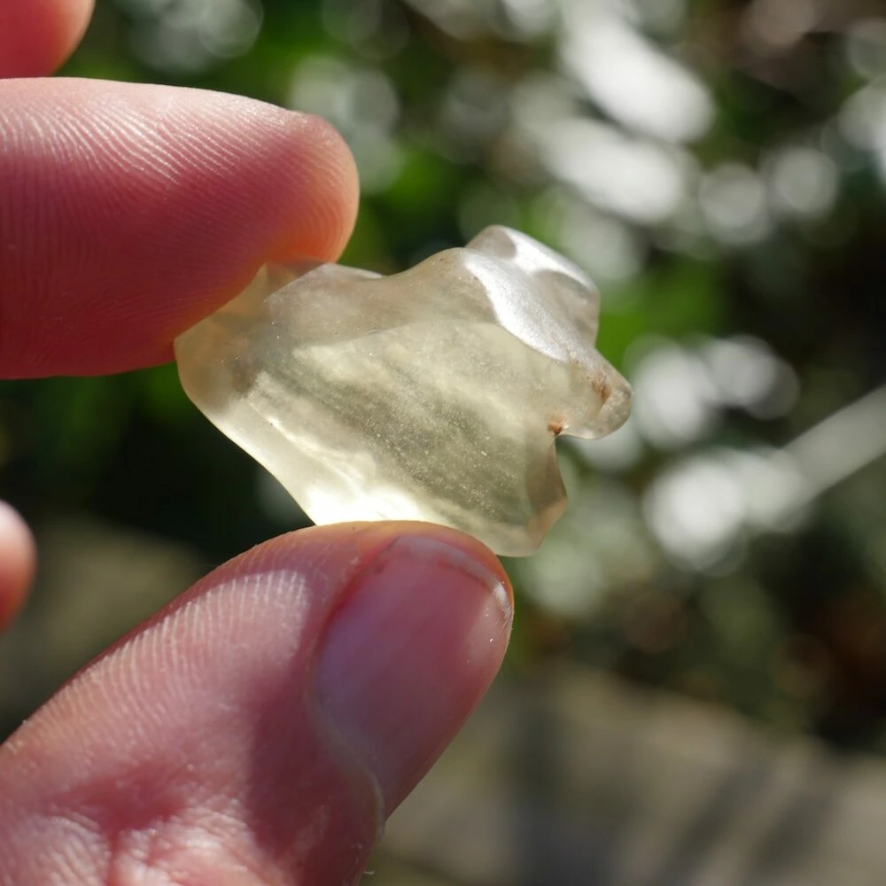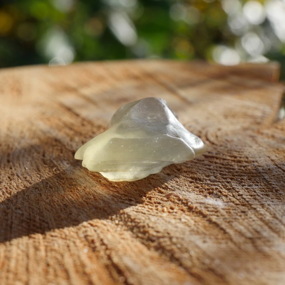 Wit-gelige Libisch woestijnglas (of goudtektiet) ruw stukje van circa 30 x 23 x 12mm. Je ontvangt het stukje Libisch woestijnglas van de foto.