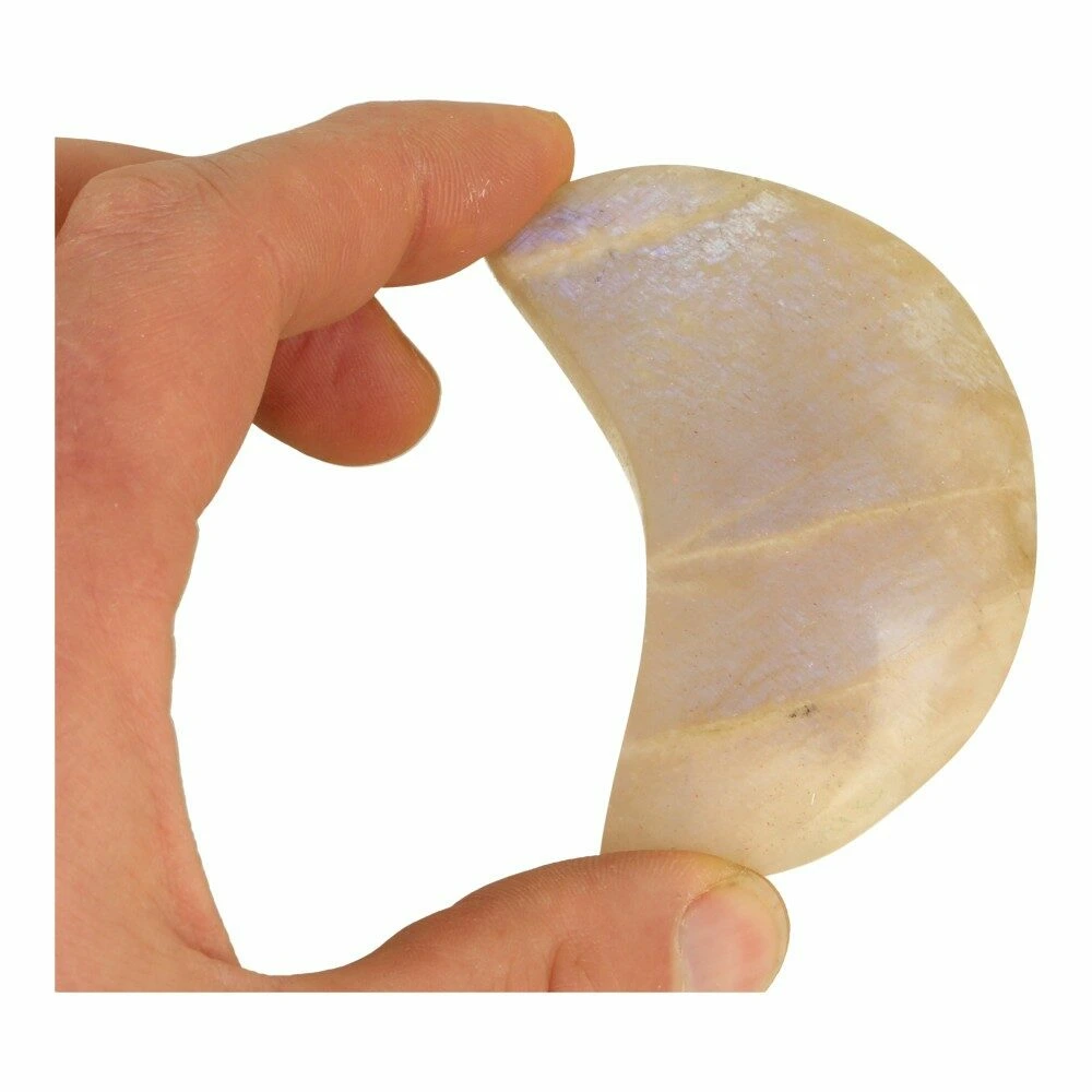Mooie A-kwaliteit maansteen maan met fraaie blauwe glans uit Tanzania. Deze fraaie maansteen maan met blauwe glans is ongeveer 7-8cm hoog, 5-6cm breed en 1,2-2cm dik. Iedere maansteen maan heeft een blauwe glans bij de juiste lichtinval, super mooi! Je ontvangt een soortgelijke maansteen maan als op de foto.