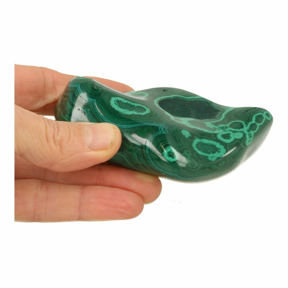 Malachiet is een van de belangrijkste beschermers tegen negatieve energie. Het doordringt het auraveld met positieve vibraties en sterkt de natuurlijke energetische afscherming. De energie die malachiet uitstraalt is heilzaam voor het hart en harmoniseert het hartchakra. Het is een steen die je helpt om emotioneel in evenwicht te blijven en vergroot het vermogen om te zien waar je eigen emotionele valkuilen liggen.