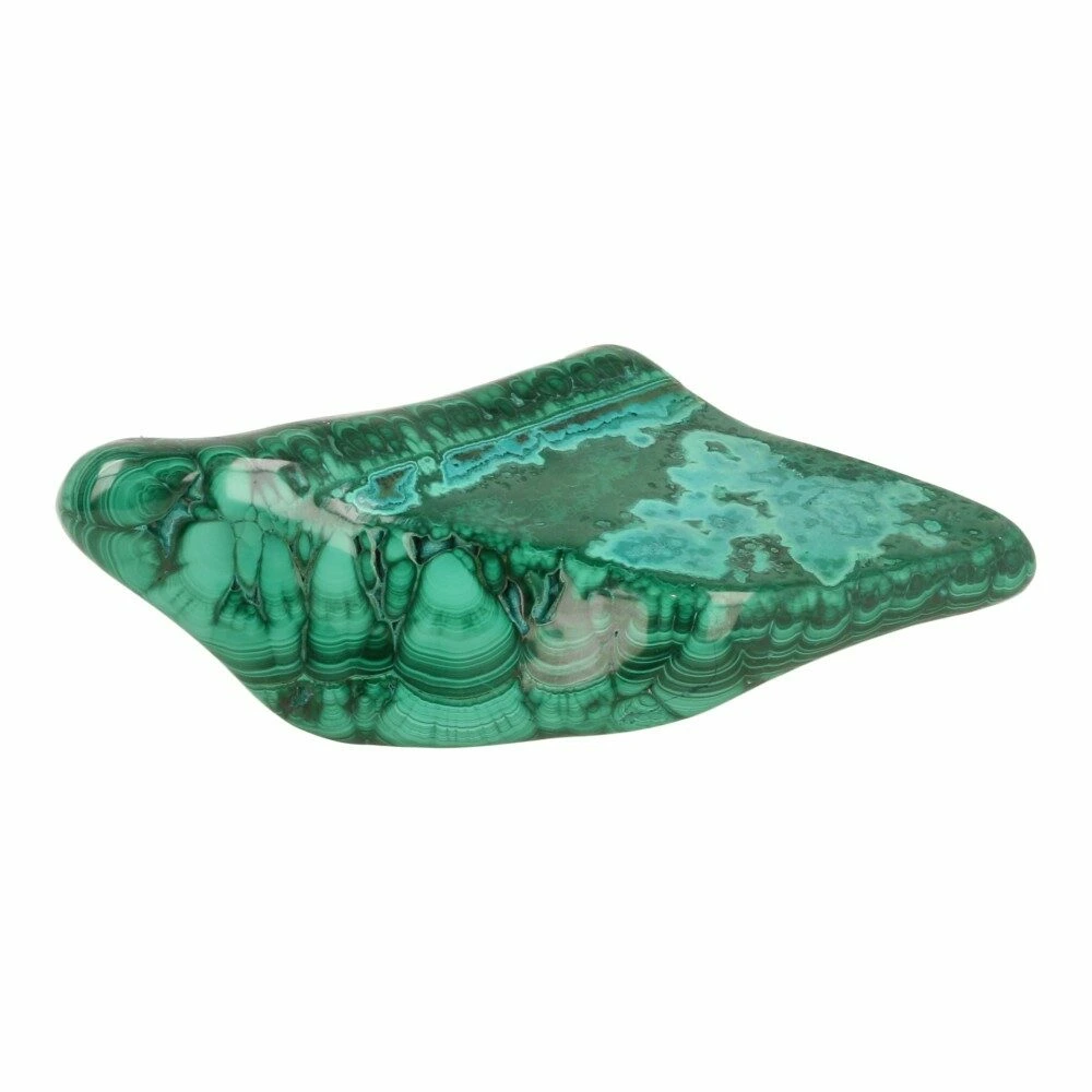 Malachiet is een kopercarbonaat met een hardheid van 3,5 tot 4. Het malachiet dat verkrijgbaar is komt uit botryoïdale massa’s met vezelige banden in lichtere en donkerdere tinten. Malachiet komt zelden in kristalvorm voor en kan zich ook voordoen als stalactiet of korstvorm. De naam is mogelijk afgeleid van het Griekse woord voor zijn kleur ‘malache’ (kaasjeskruid), of van de geringe hardheid van het Griekse ‘malakos’ (zacht). Malachiet is soms vergroeid met azuriet of chrysocolla.