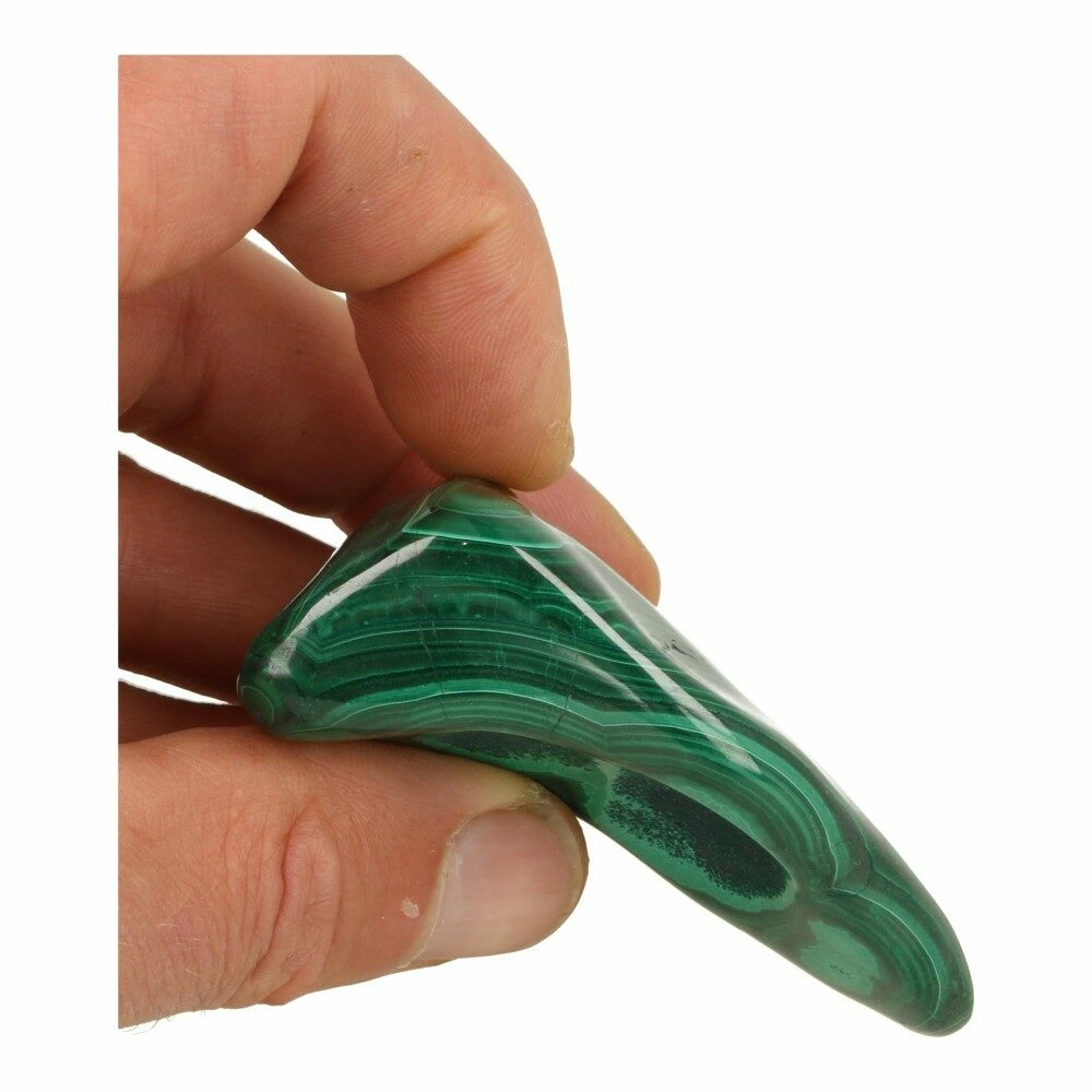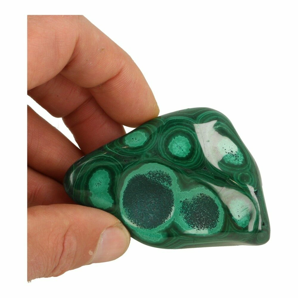 Prachtige diepgroene malachiet gepolijst uit Democratische Republiek Congo. Dit stuk gepolijste malachiet heeft een fraaie fijne tekening aan beide zijdes en een aantal natuurlijk holtes met ruwe malachiet kristallen. De afmeting is circa 76 x 53 x 25 mm. Je ontvangt de malachiet gepolijst van de foto.