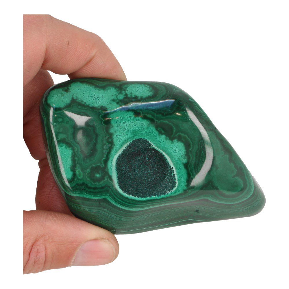Malachiet is een van de belangrijkste beschermers tegen negatieve energie. Het doordringt het auraveld met positieve vibraties en sterkt de natuurlijke energetische afscherming. De energie die malachiet uitstraalt is heilzaam voor het hart en harmoniseert het hartchakra. Het is een steen die je helpt om emotioneel in evenwicht te blijven en vergroot het vermogen om te zien waar je eigen emotionele valkuilen liggen.