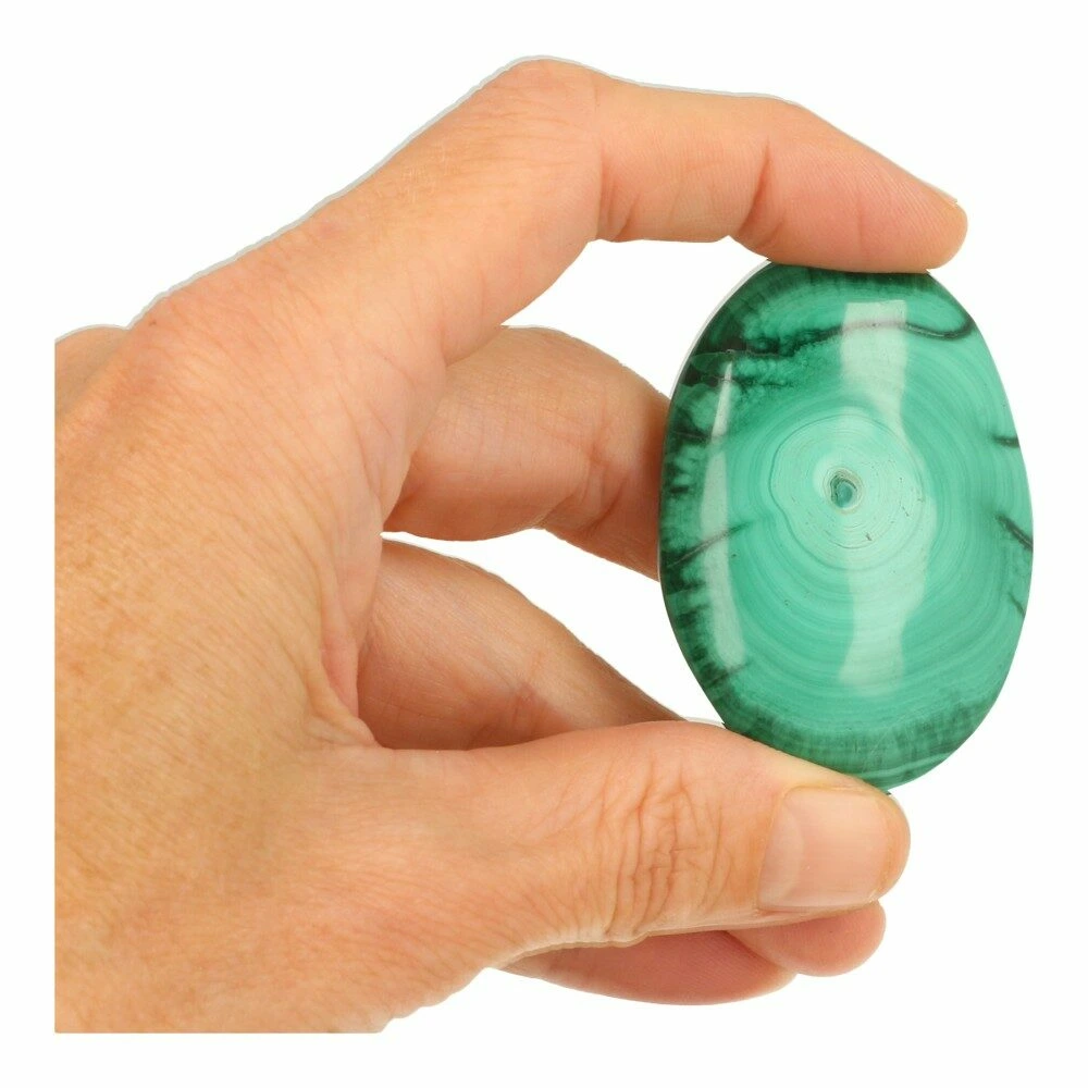Mooie diepgroen geaderde malachiet knuffelsteen uit Congo. Je ontvangt een soortgelijke malachiet knuffelsteen als op de foto. De afmetingen zijn ongeveer 5,5 – 6cm lang, 4 – 4,5cm breed en 1,5 – 2cm dik.