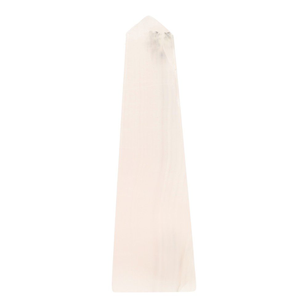 Heerlijk zachtroze mangano calciet toren, of punt met hoogte van 9,5cm en een basis van 28 x 29mm uit Pakistan. Mangano calciet wordt ook wel roze calciet of opaak genoemd. Deze mangano calciet punt heeft in werkelijkheid een iets meer roze kleur met een subtiel lichter lijnenspel. Je ontvangt de gepolijste Mangano calciet punt van de foto.