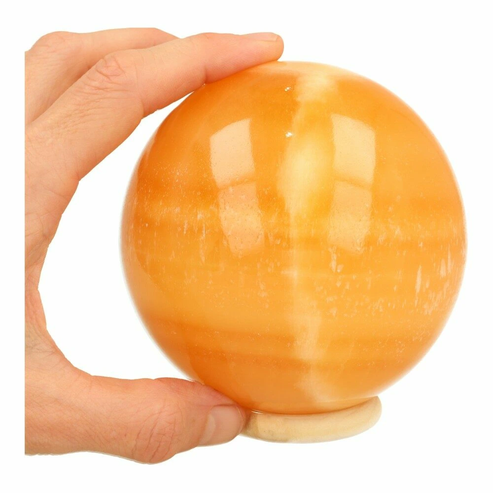 Heerlijk frisse oranje calciet bol van ongeveer 10cm doorsnede uit Mexico. Naast de algemene beschrijving van oranje calciet zoals je hieronder vindt, heeft de bolvorm een extra uitwerking in een ruimte. Door de bolvorm wordt de ruimte waarin de bol staat opgesteld optimaal gevuld met de energie van de oranje calciet Je ontvangt de oranje calciet bol van de foto’s, inclusief ringetje.